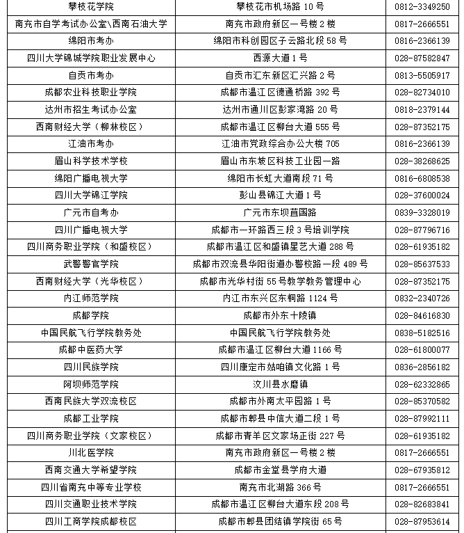五、四川省NCRE考点信息