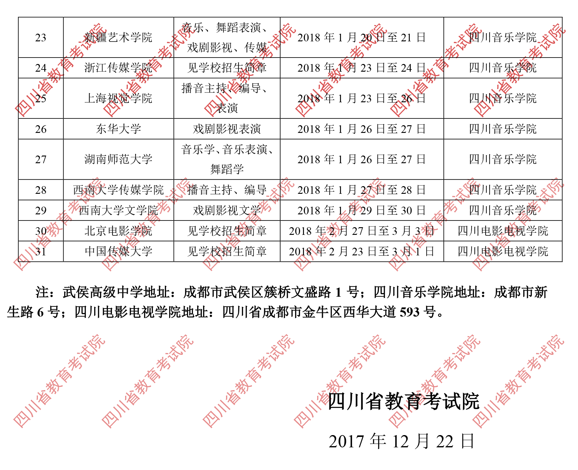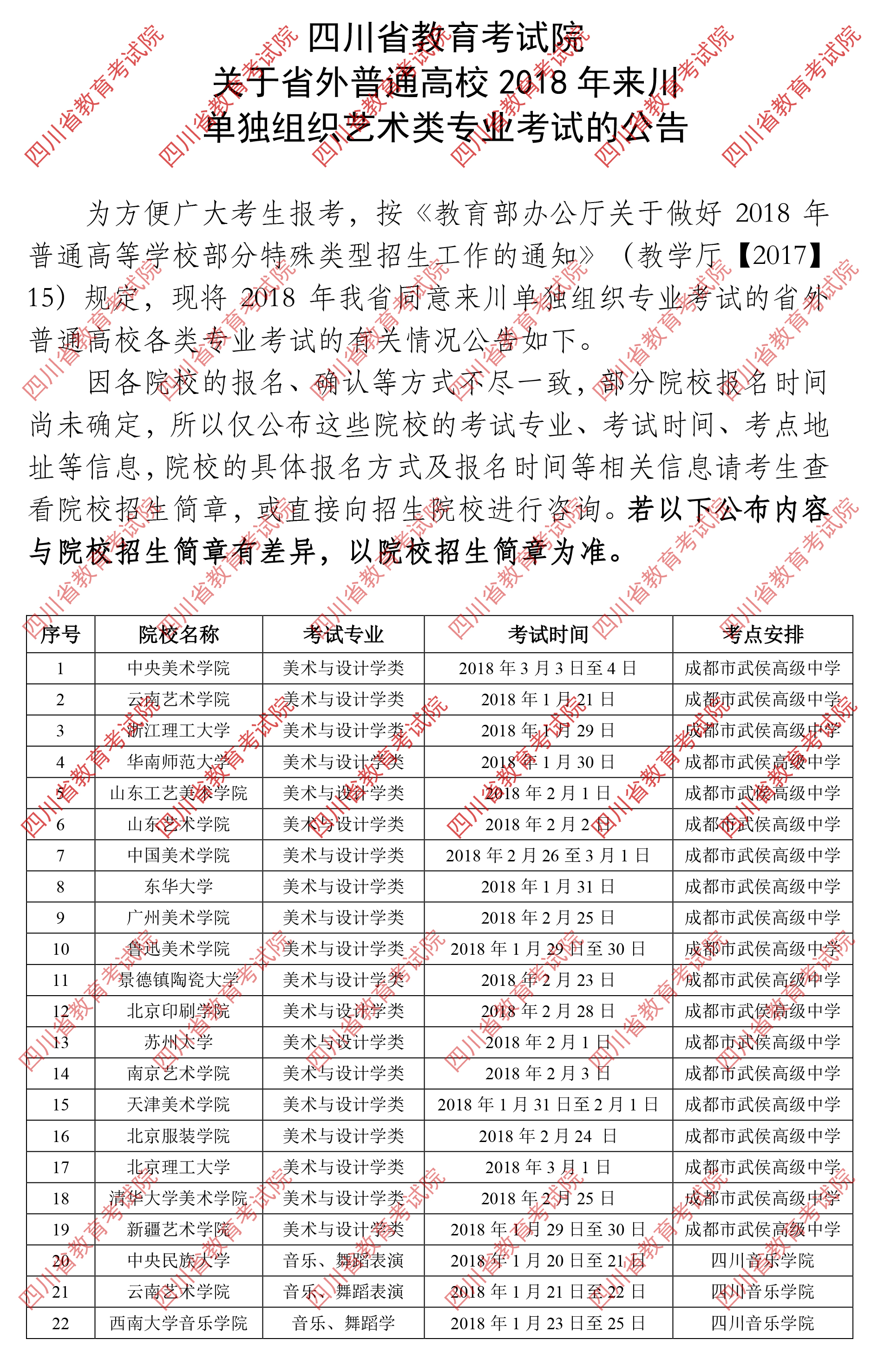 关于省外普通高校2018年来川单独组织艺术类专业考试的公告