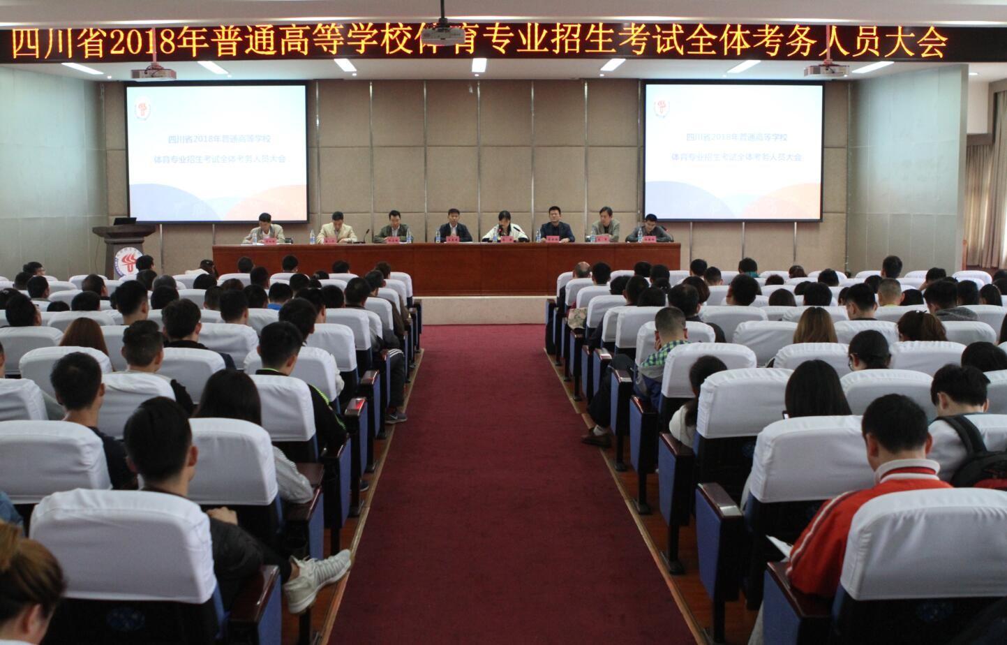 为扎实做好各项备考工作,确保体育专业考试顺利进行,考务办公室先后组织召开了安全保卫工作协调会、联络员和带队老师会议、考务会议等工作会议,并对相关工作作出全面安排部署。省教育厅巡视员王嵩建在3月30日召开的四川省2018年普通高等学校体育专业招生考试全体考务人员大会上,对参试考务人员提出了四点要求:一是提高政治站位,要从讲政治、讲大局、讲稳定的角度出发,站在维护社会稳定的高度、全面做好体考工作。二是坚持考核标准,严守考务纪律。要严格按照2018年体育类评分标准,严格按照考核规定,公正评分、准确判断,严肃考风、考纪,实行动态监督机制。三是切实加强专业考试的组织管理,强化考前培训,严格执行考试制度规定,坚持做好考务工作的精细化管理,将各项规章制度落实到每个人。四是坚持以人为本,关爱考生,从考生根本利益出发,尊重考生,服务考生,为考生排忧。
