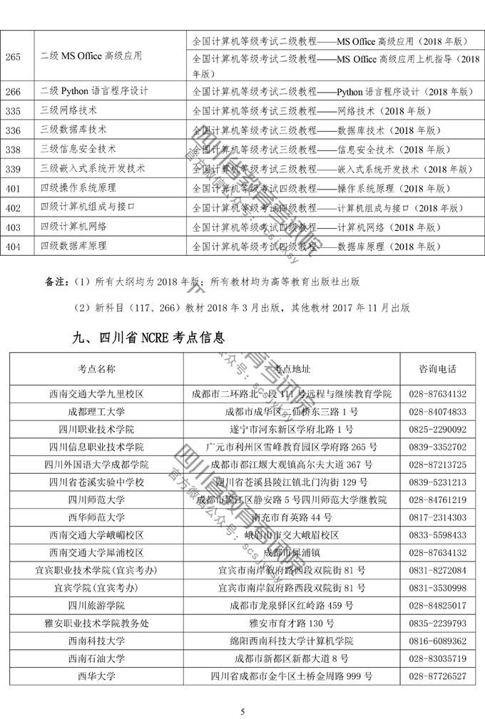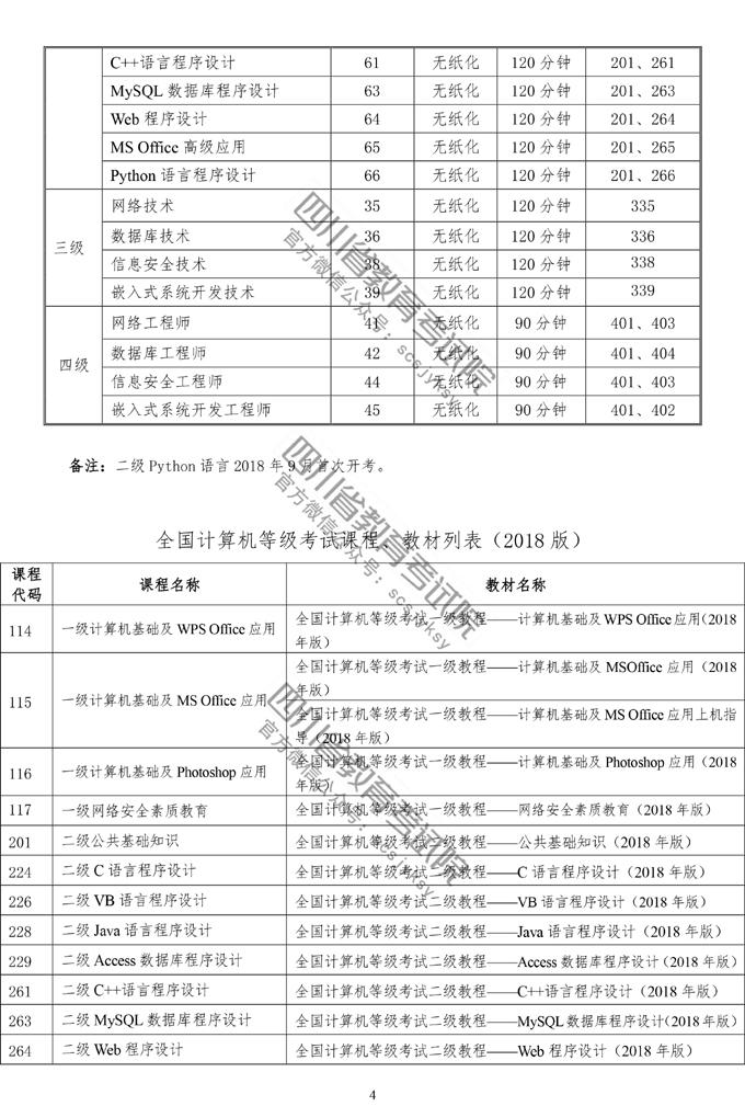 四川省2018年下半年全国计算机等级考试(NCRE)报考简章