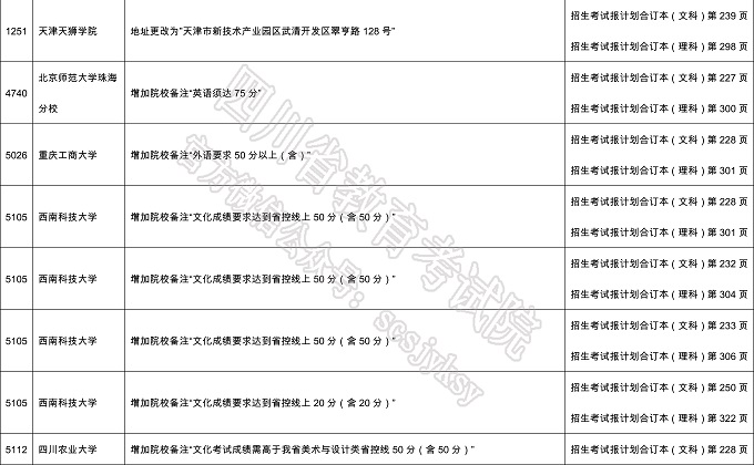 四川省艺体类考生志愿填报注意事项和《部分艺体类招生计划更正及调整通知》