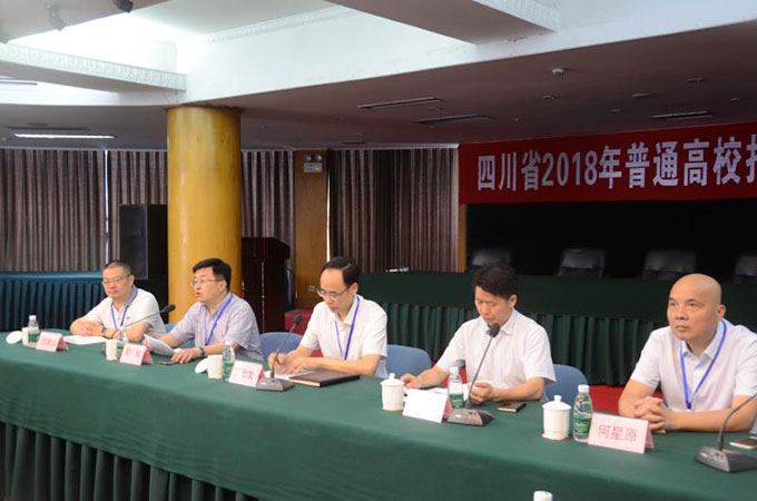 上午10时,省录取场首先召开了四川省2018年录取场媒体通气会。省委宣传部新闻处处长王忠臣,省录取工作领导小组副组长、省教育考试院党委书记丁念友,省教育考试院党委副书记舒欣,省教育考试院党委委员何星原和省录取场宣传组负责人出席会议。本次会议由舒欣主持,王忠臣在讲话中鼓励各位记者秉承对社会、家长和考生负责的态度,充分利用多种宣传途径把高校招生录取信息传递到千家万户。丁念友随后向大家介绍了今年招生录取工作的总体安排和当前进展情况。最后,与会者一致表示将共同做好今年普通高校招生录取宣传报道。