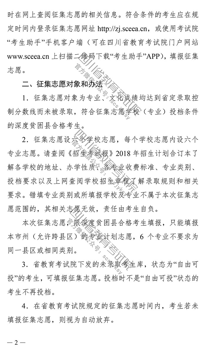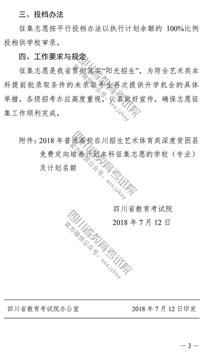关于四川省2018年普通高校艺术体育类专业招生深度贫困县免费定向培养计划本科录取未完成计划学校征集志愿的通知