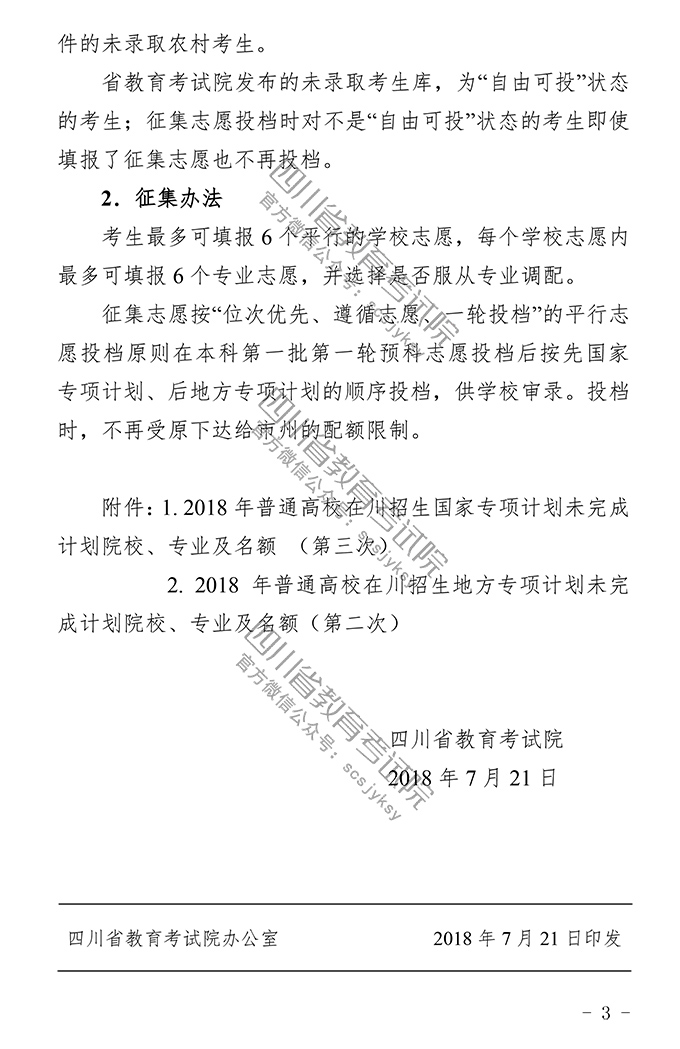 关于国家专项计划招生未完成计划院校第三次、地方专项计划招生未完成计划院校第二次征集志愿的通知