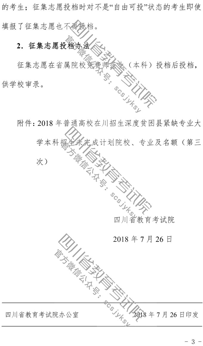 关于深度贫困县紧缺专业大学本科未完成计划院校第三次征集志愿的通知