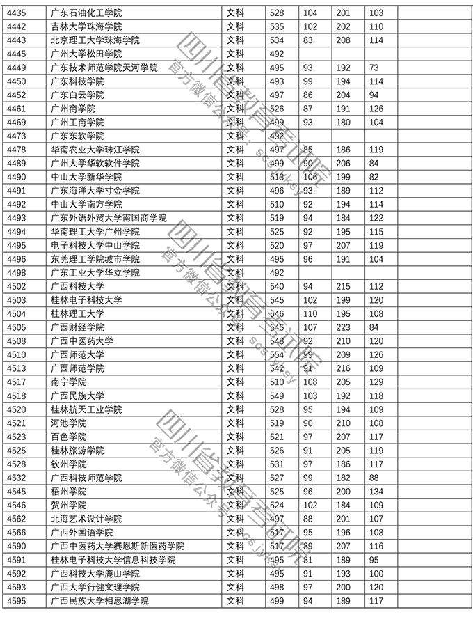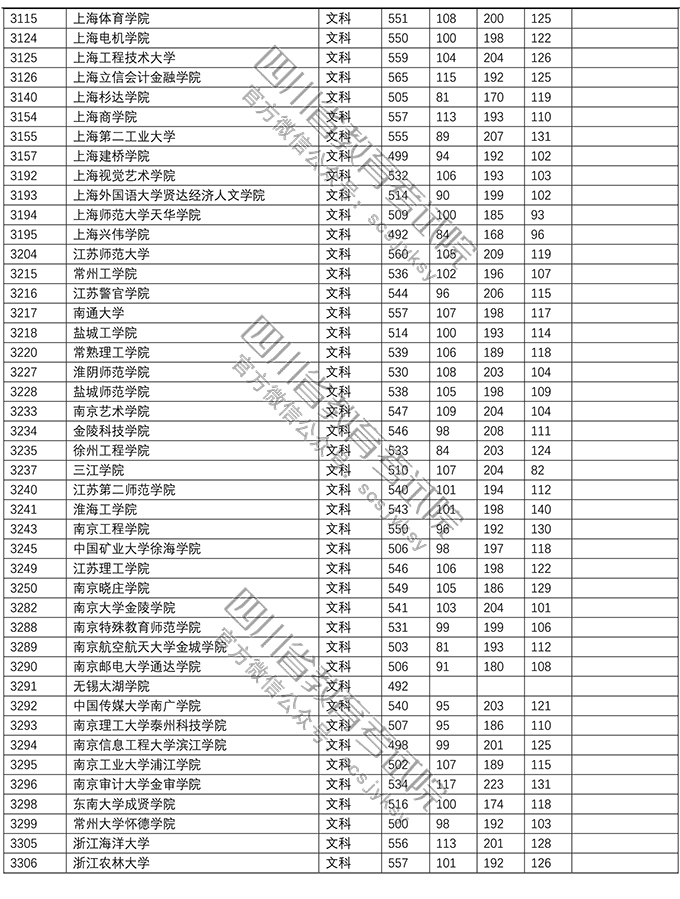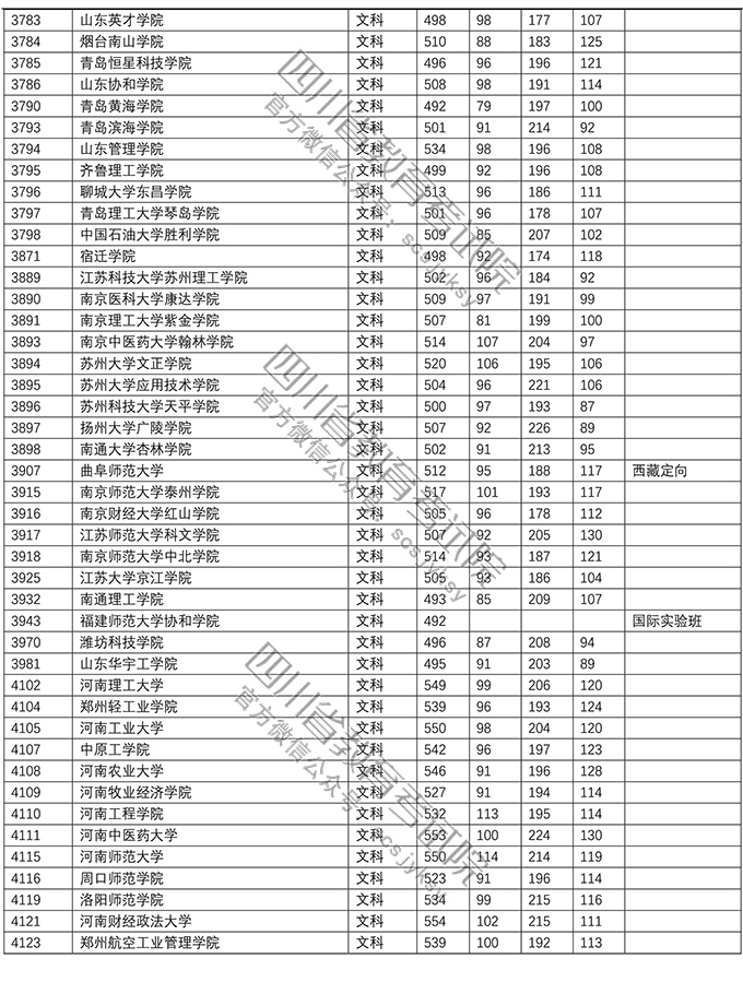 2018年普通高校在川招生本科二批院校录取调档线