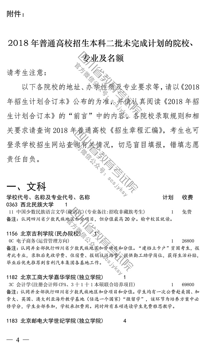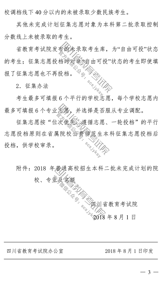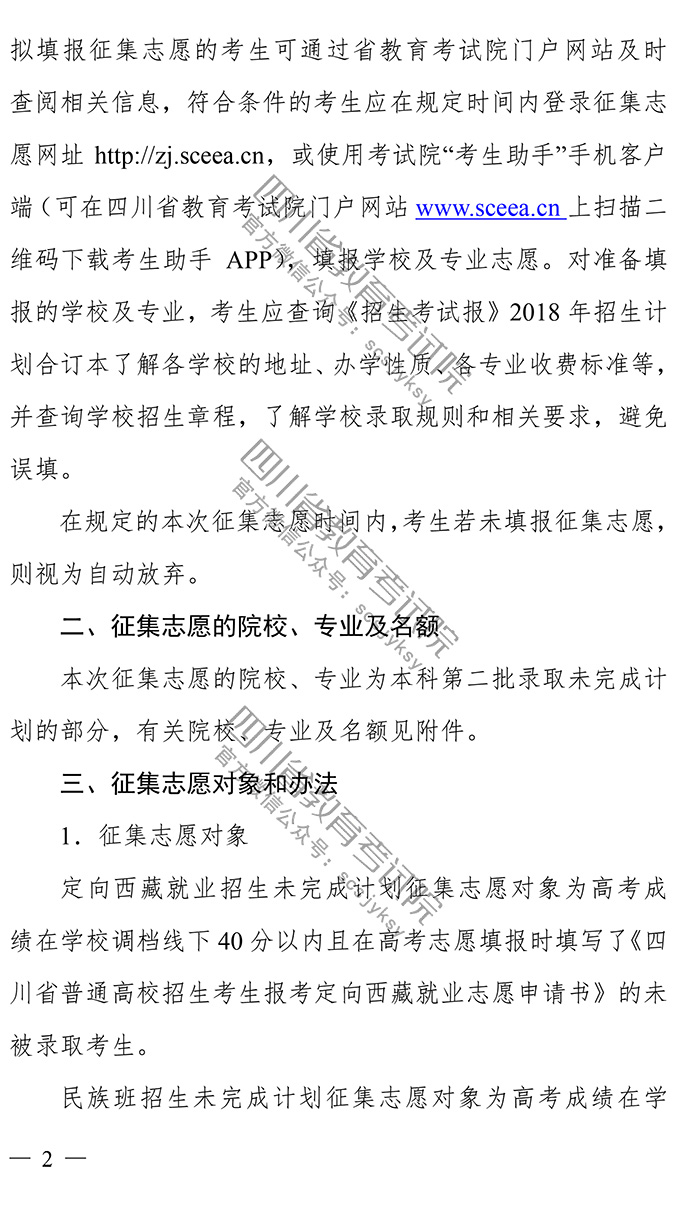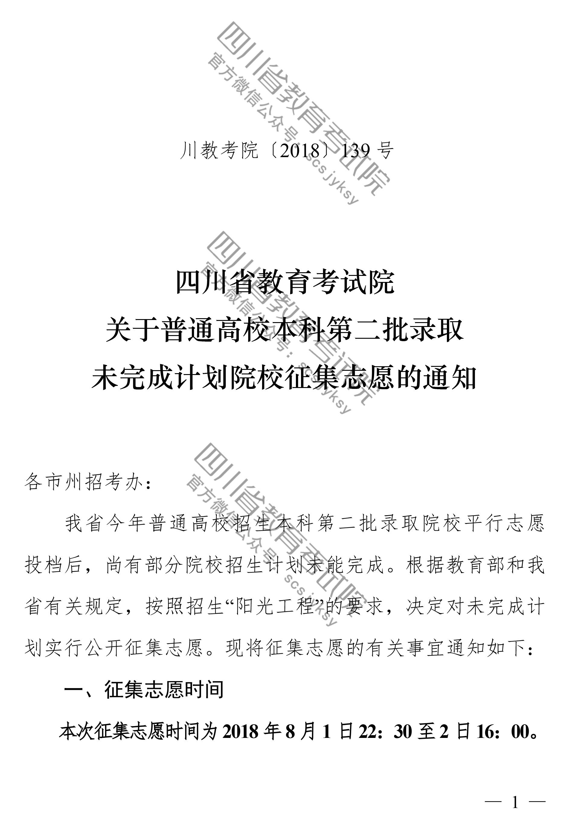 关于普通高校本科第二批录取未完成计划院校征集志愿的通知