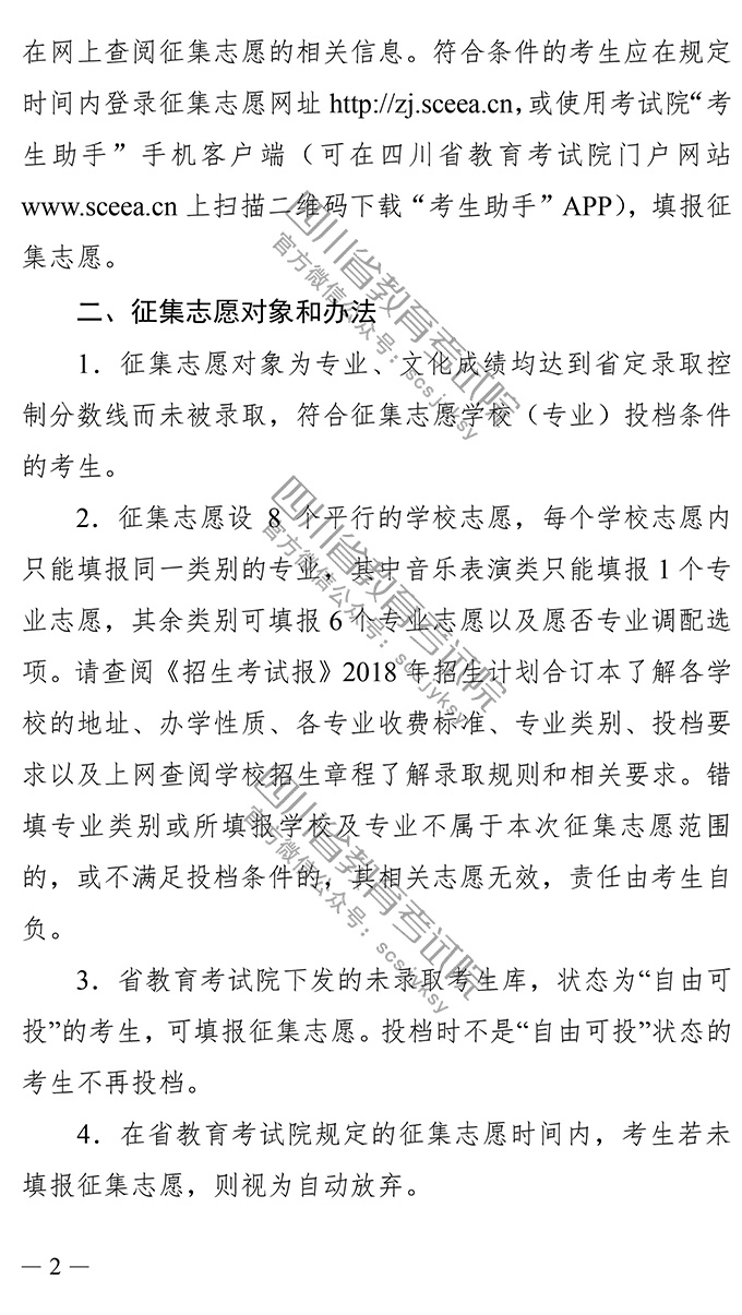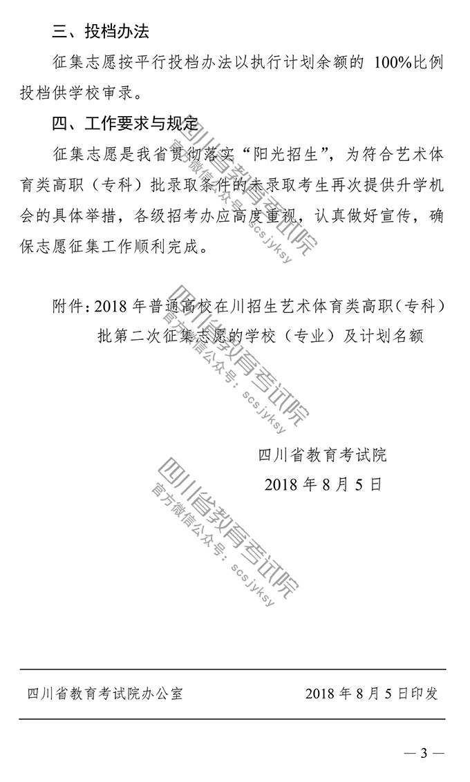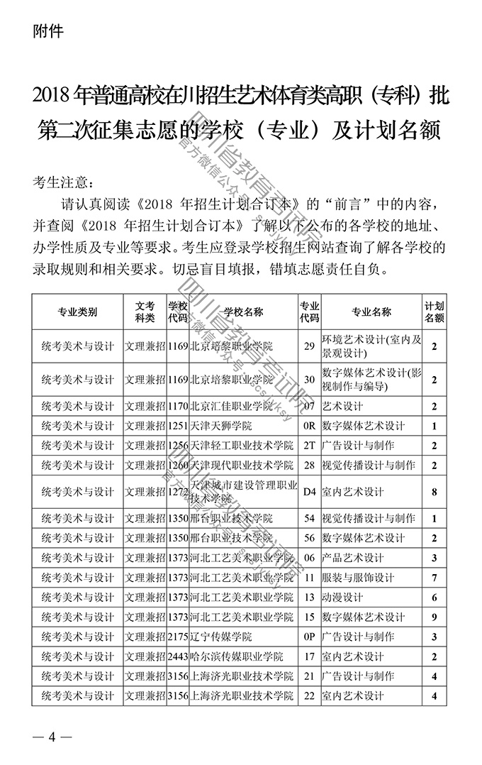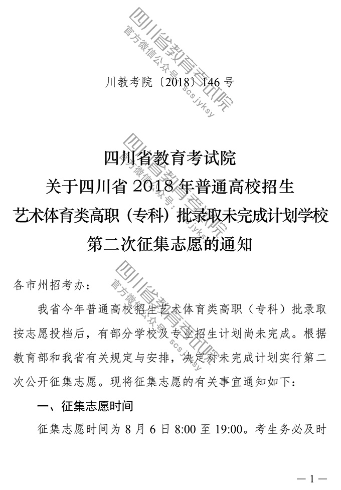 关于四川省2018年普通高校招生艺术体育类高职(专科)批录取未完成计划学校第二次征集志愿的通知
