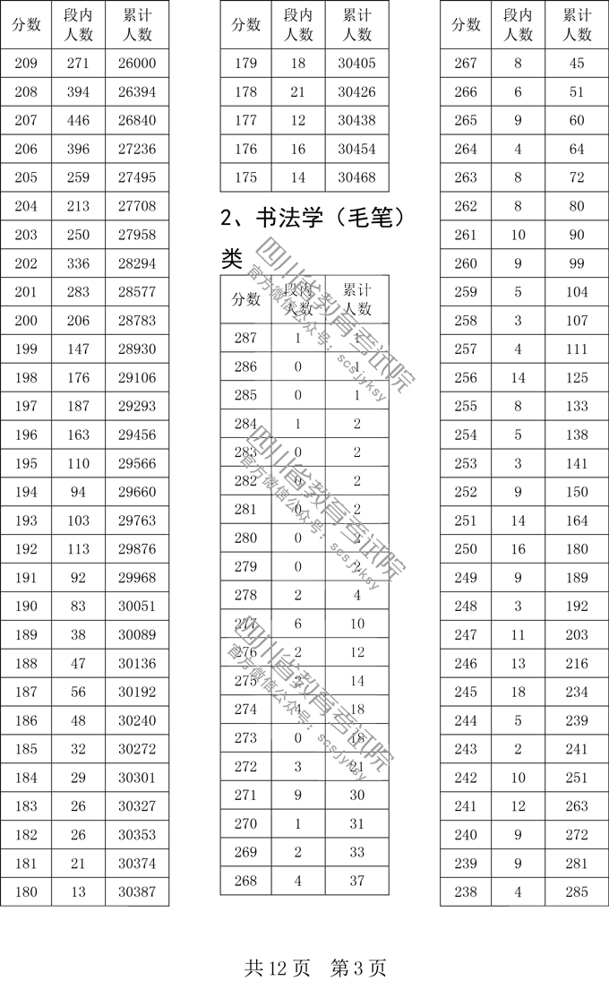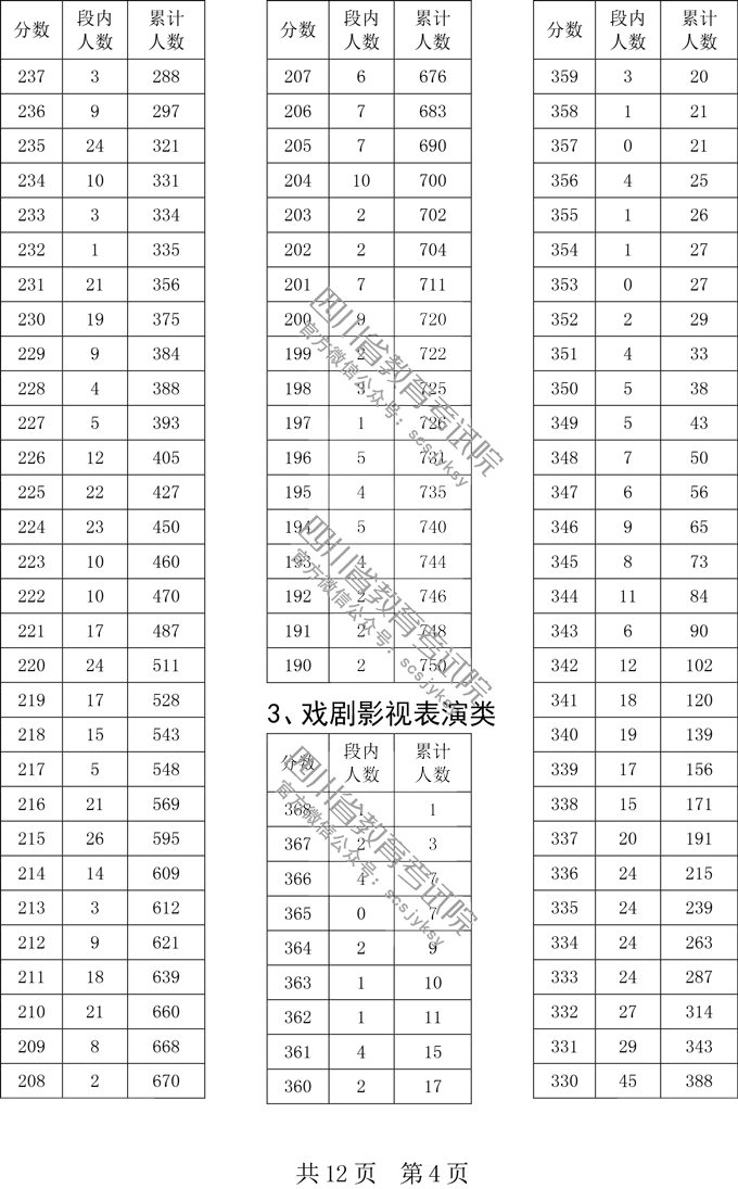 四川省2019年普通高校招生艺术类专业统考(美术与设计类、书法学、戏剧与影视类、舞蹈类)成绩一分段统计表