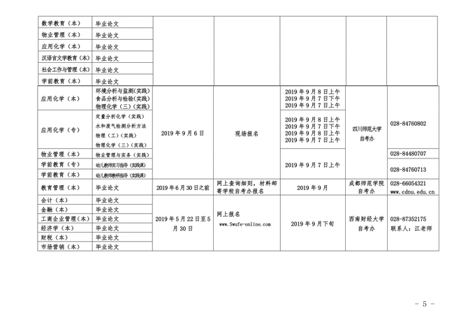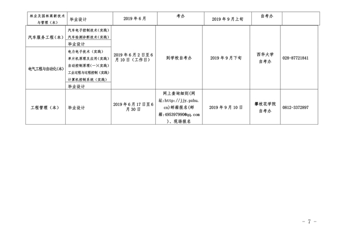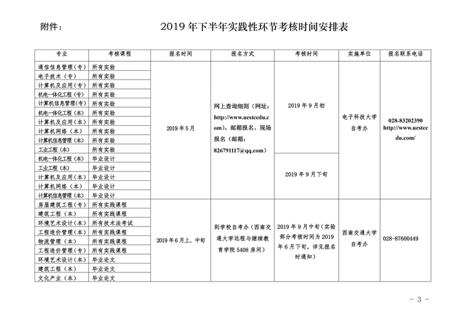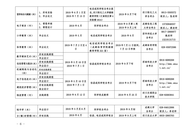附件:2019年下半年面向社会开考专业实践性环节考核时间安排表