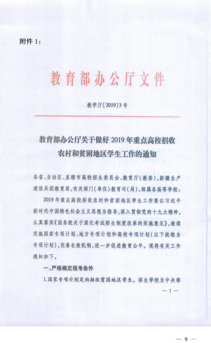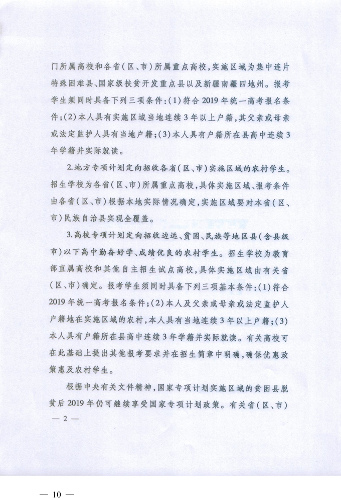 关于做好我省2019年重点高校招收农村和贫困地区学生工作的通知