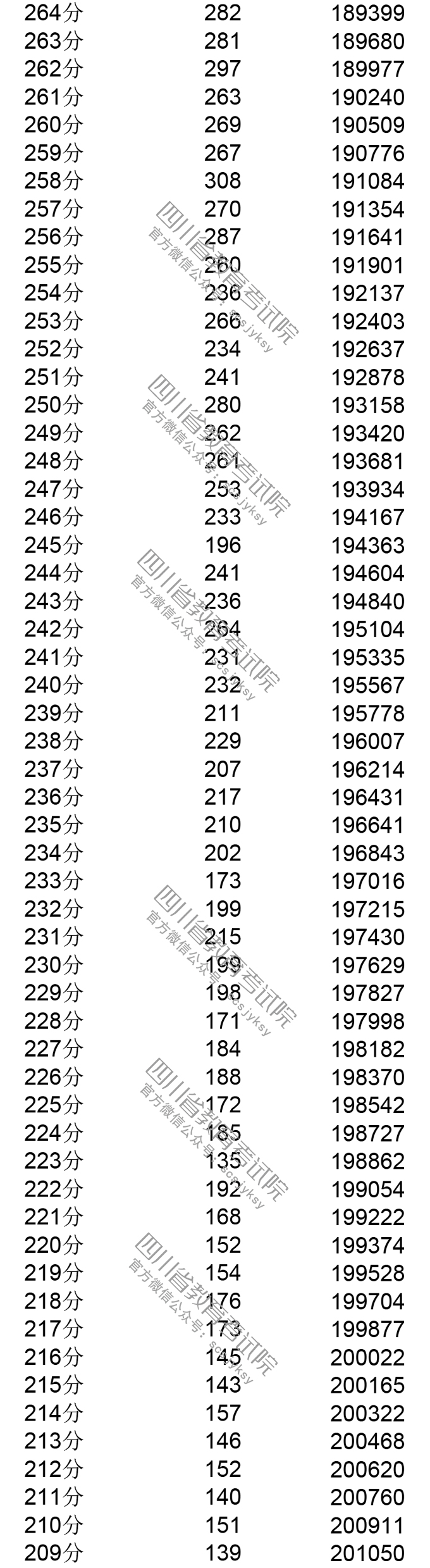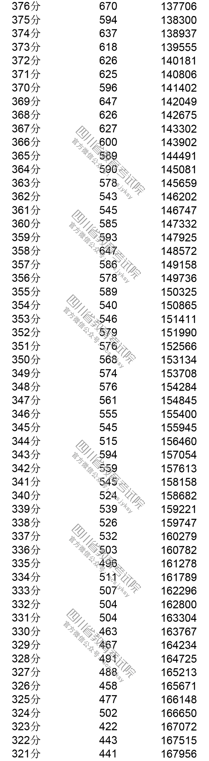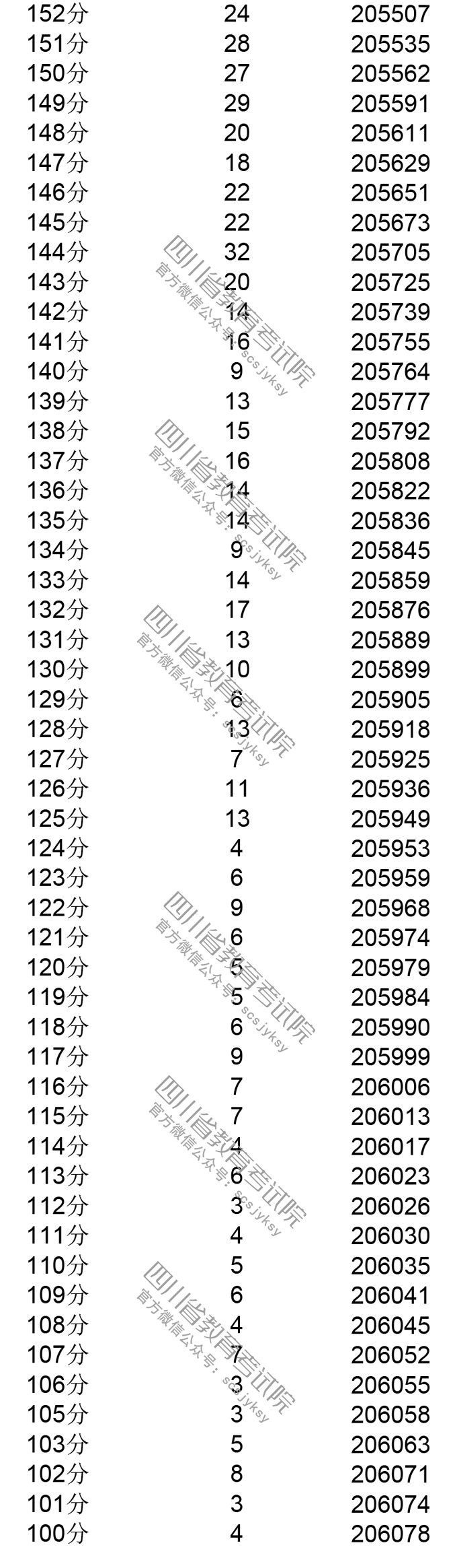 四川省2024年普通高校招生本科艺术类综合成绩、体育类专业成绩分段统计表