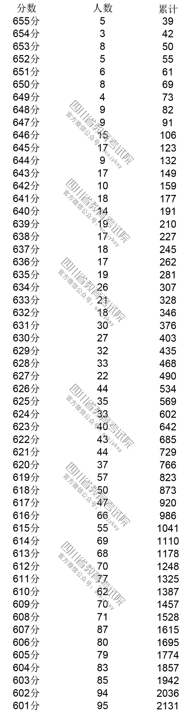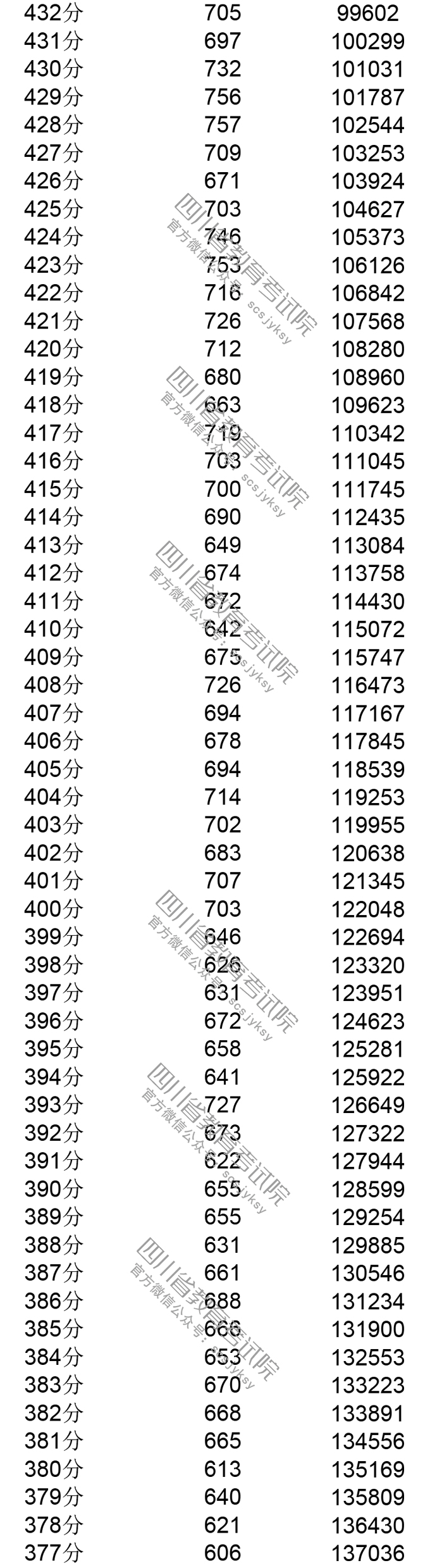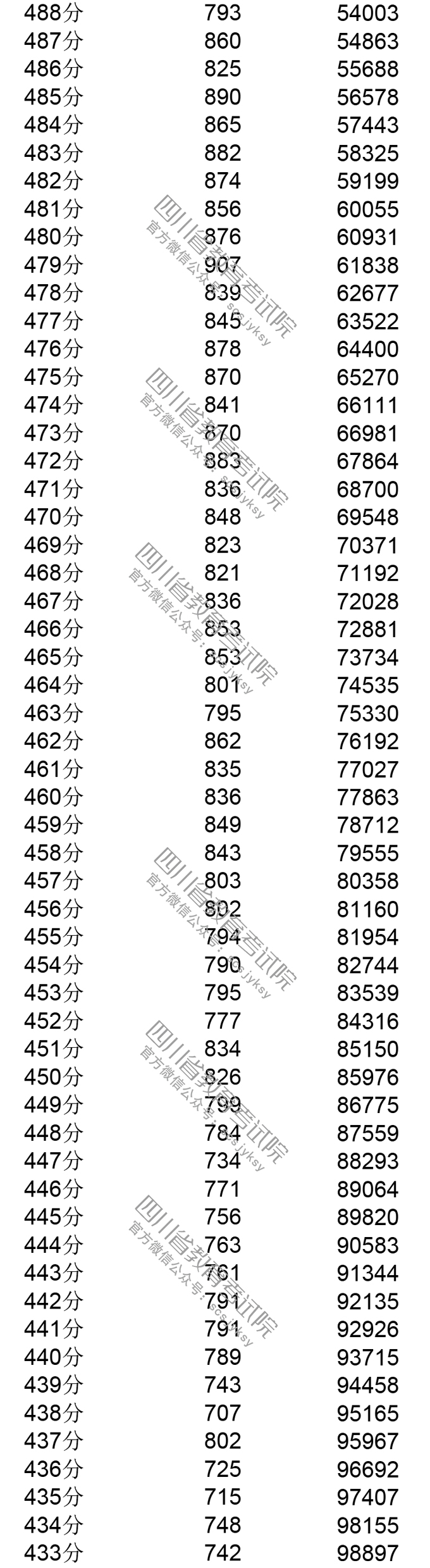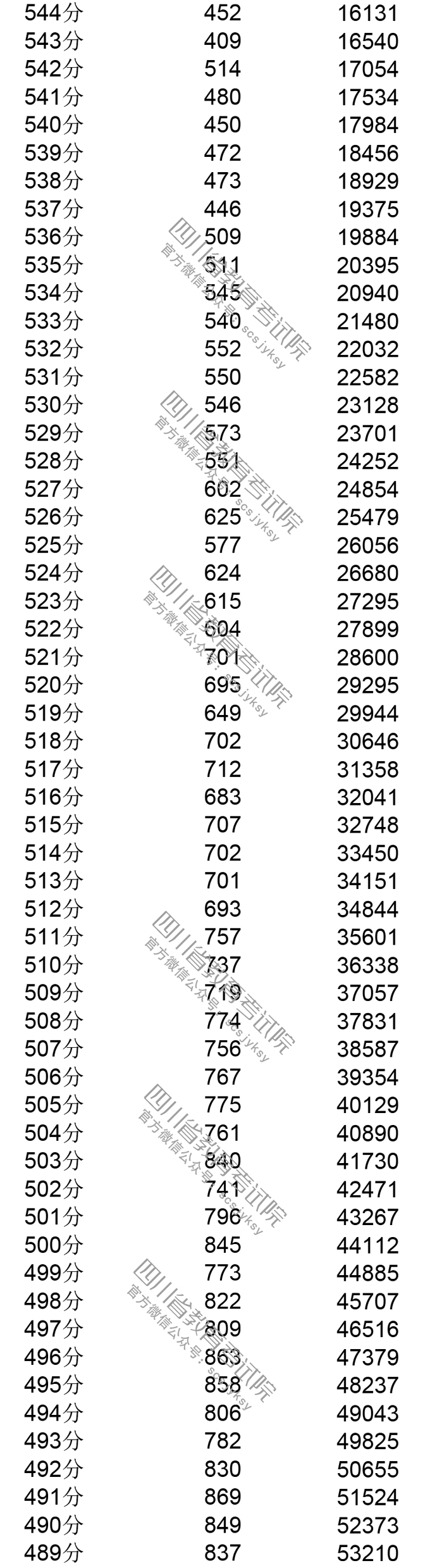 四川省2024年普通高校招生本科艺术类综合成绩、体育类专业成绩分段统计表