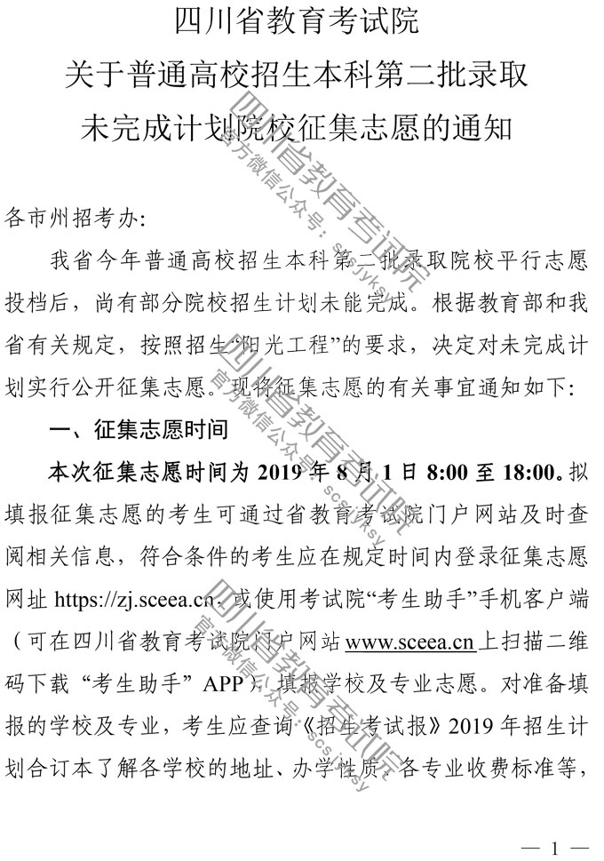 关于普通高校招生本科第二批录取未完成计划院校征集志愿的通知