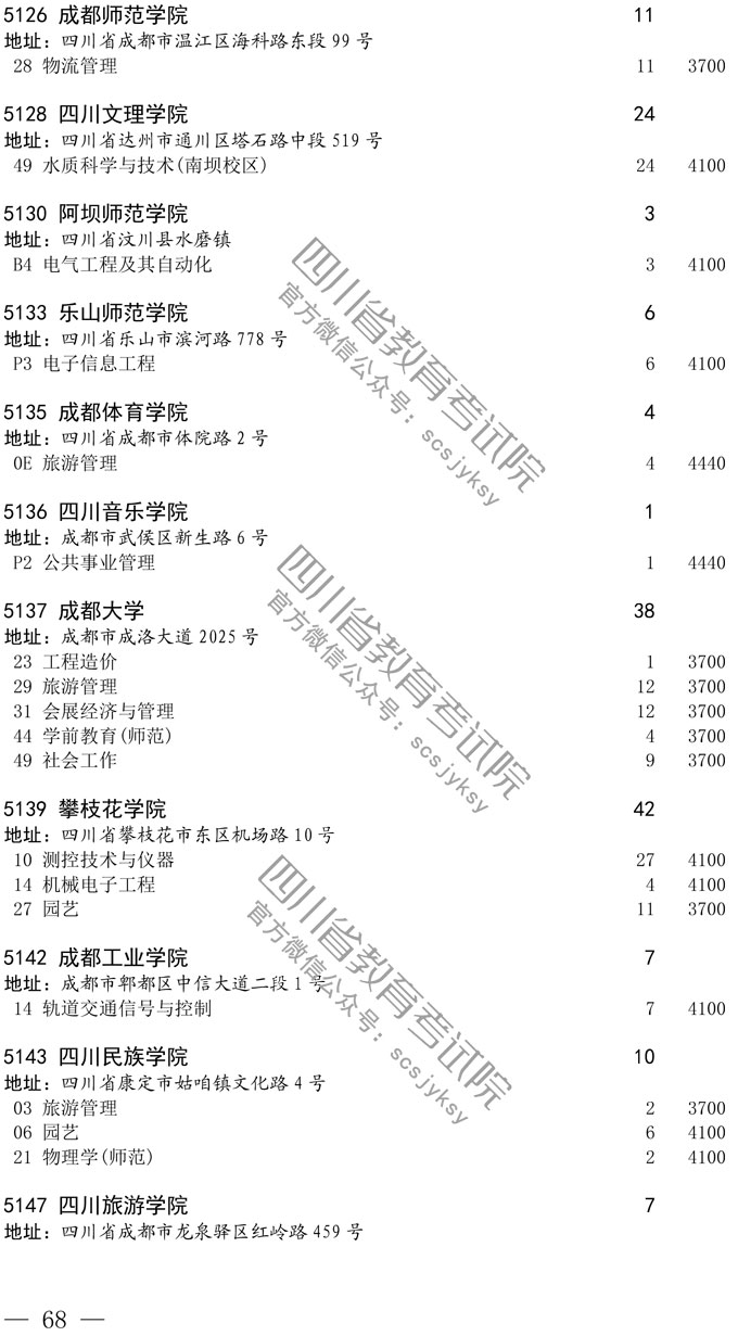 四川省高等教育自学考试2024年10月(242次)考试课表、课程简表