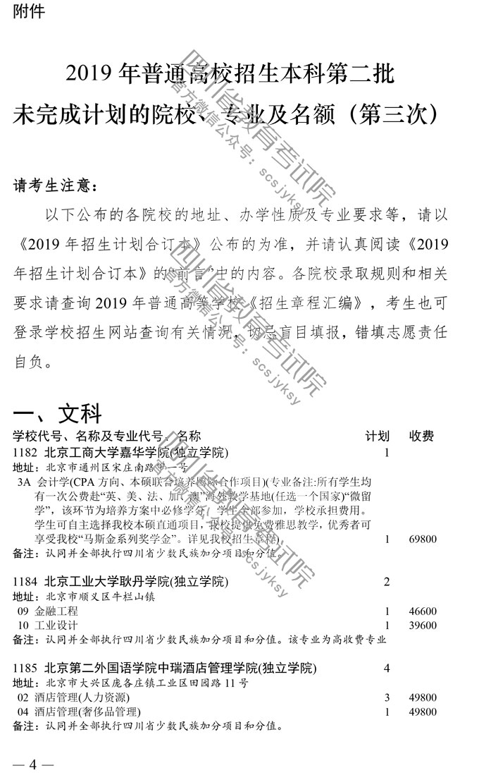 关于普通高校本科第二批录取未完成计划院校第三次征集志愿的通知