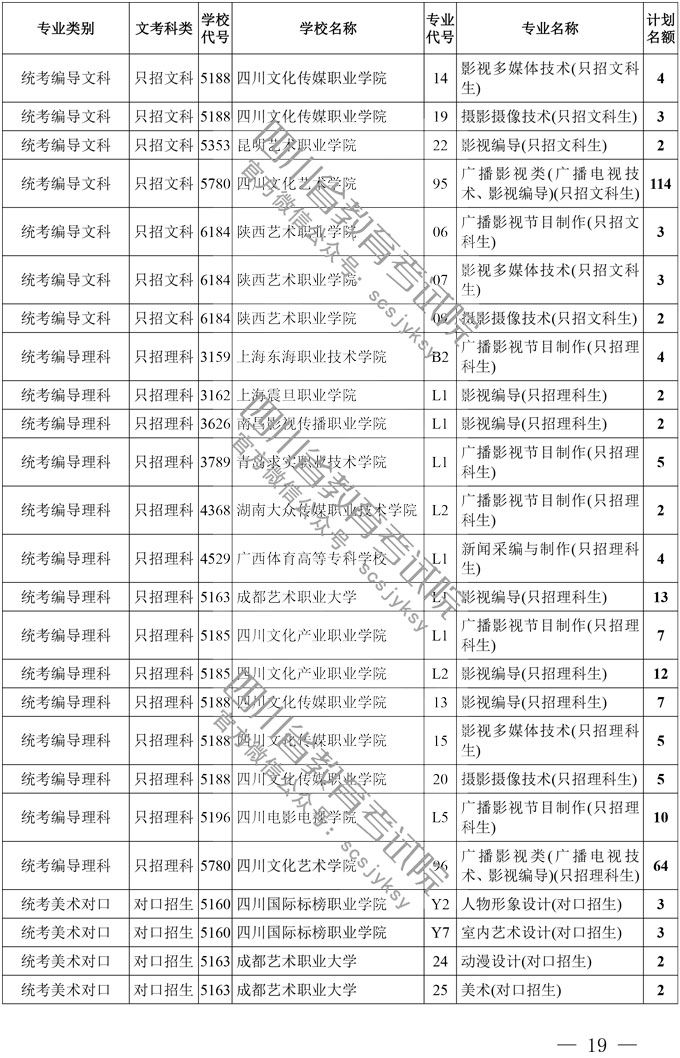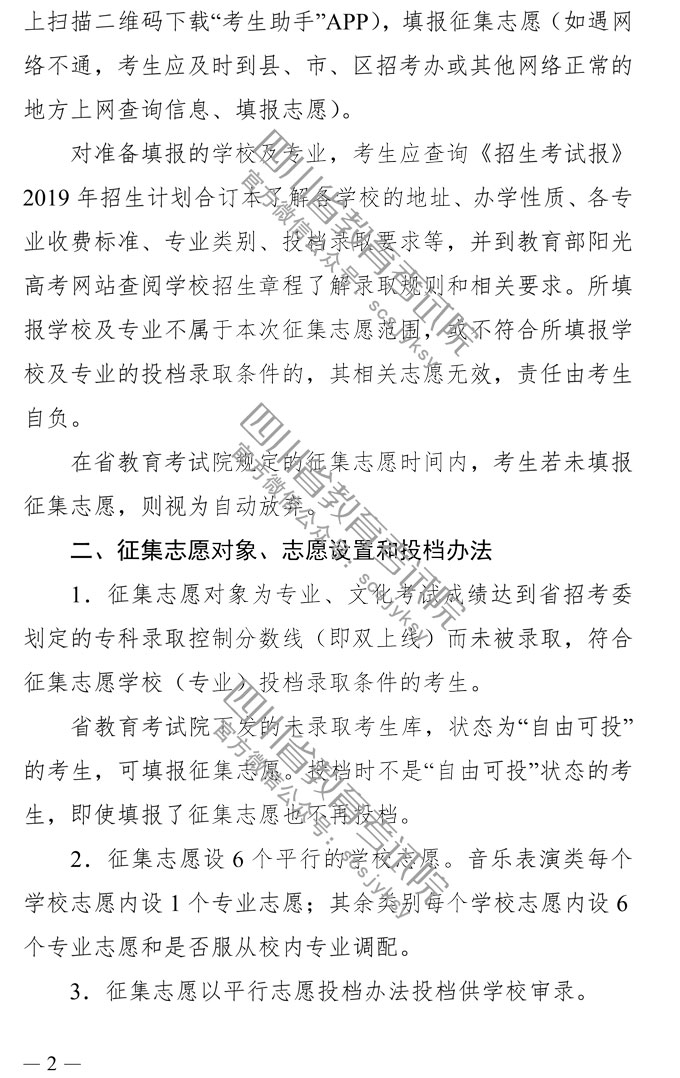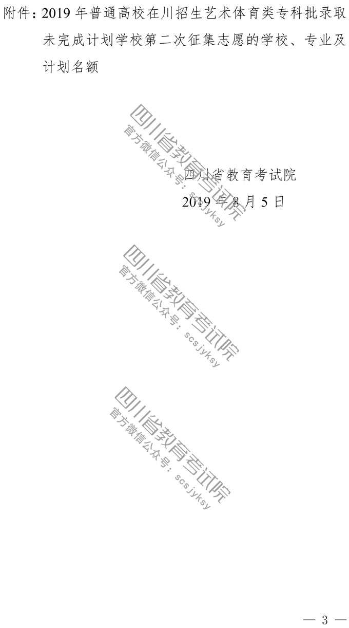 关于四川省2019年普通高校招生艺术体育类专科批录取未完成计划学校第二次征集志愿的通知