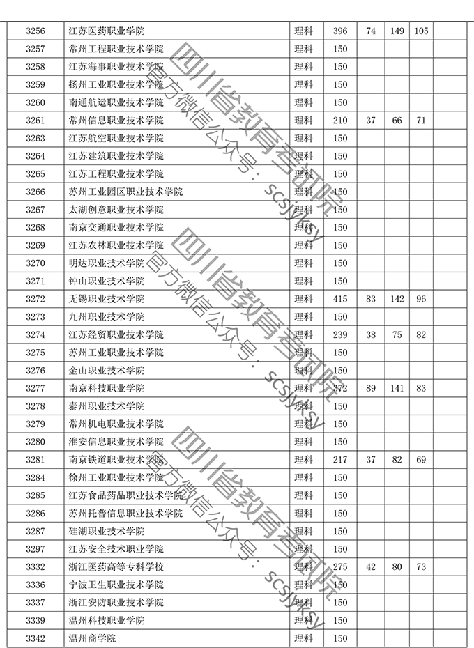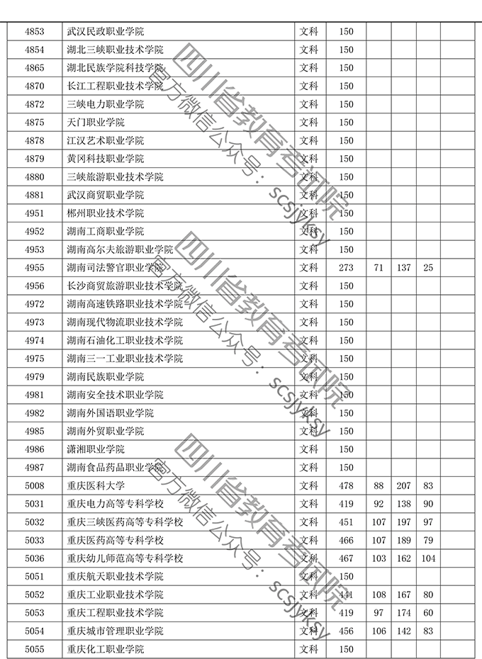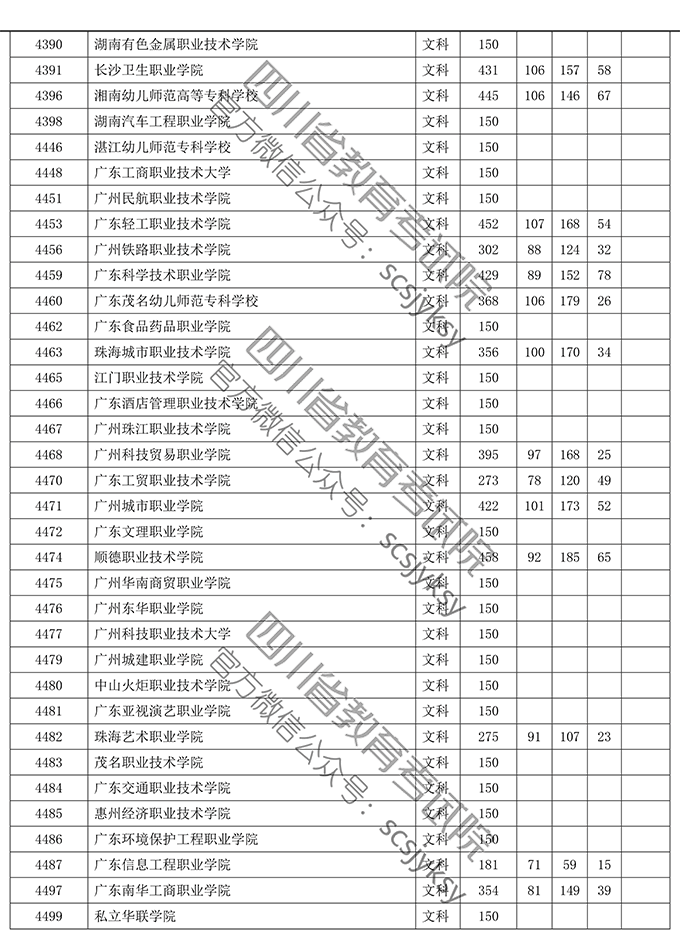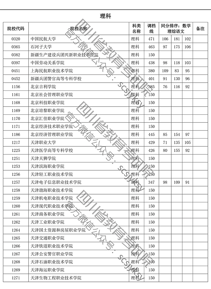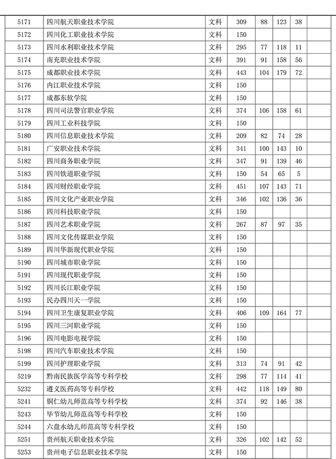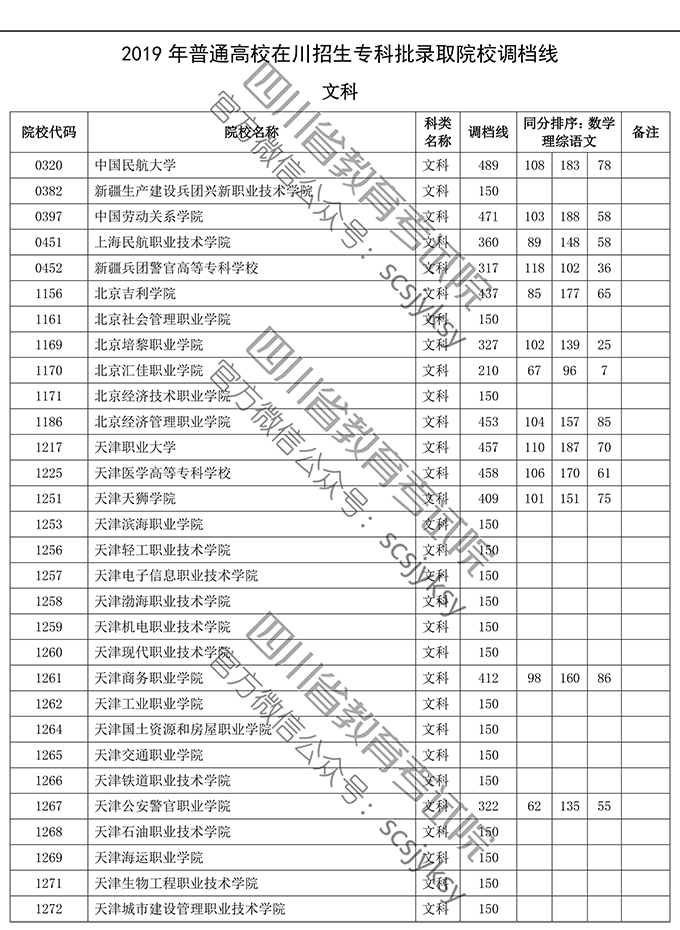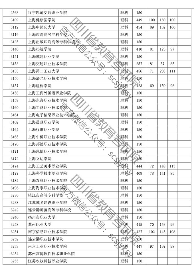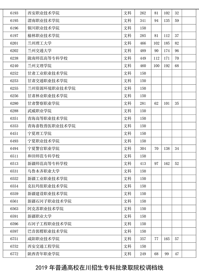 四川省2019年普通高等学校在川招生专科录取院校调档线