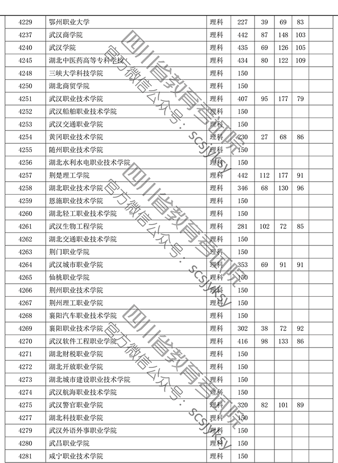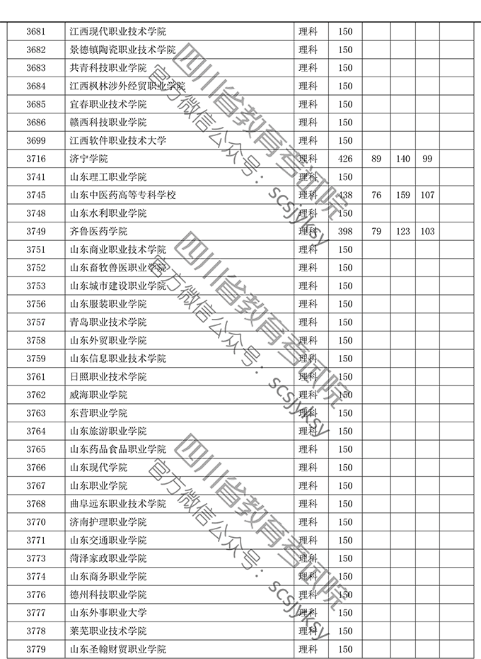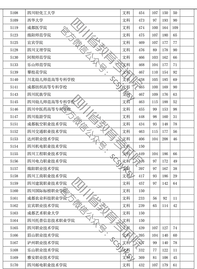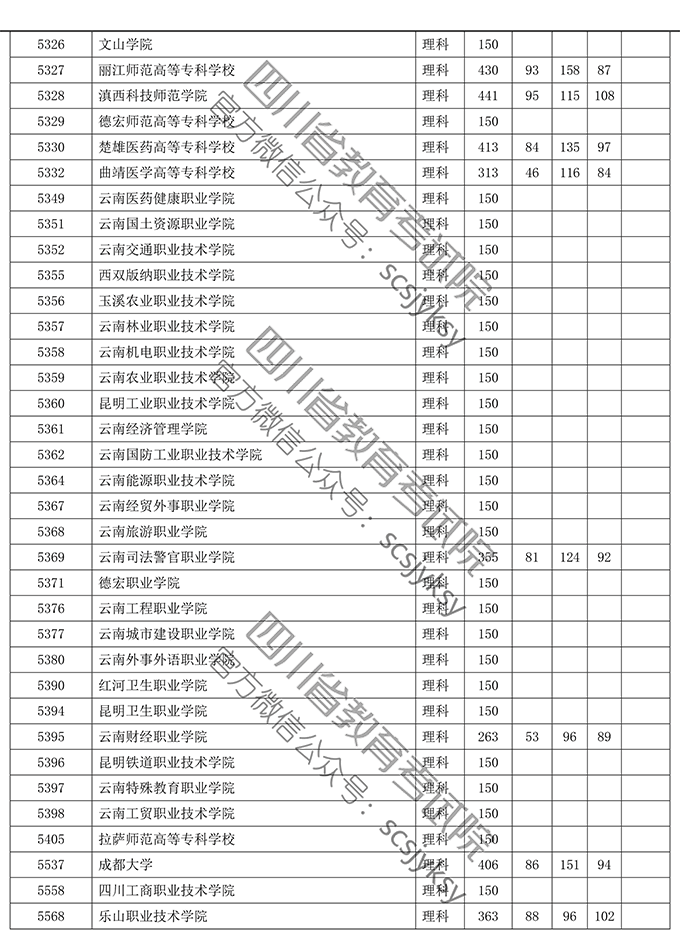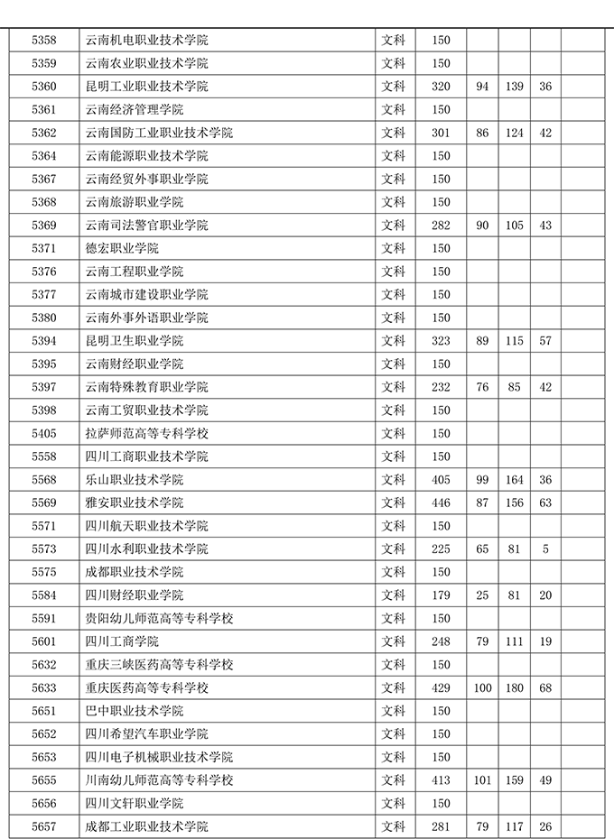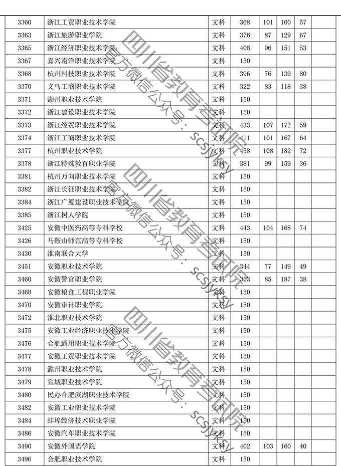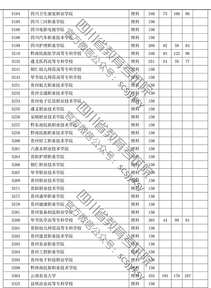 四川省2019年普通高等学校在川招生专科录取院校调档线