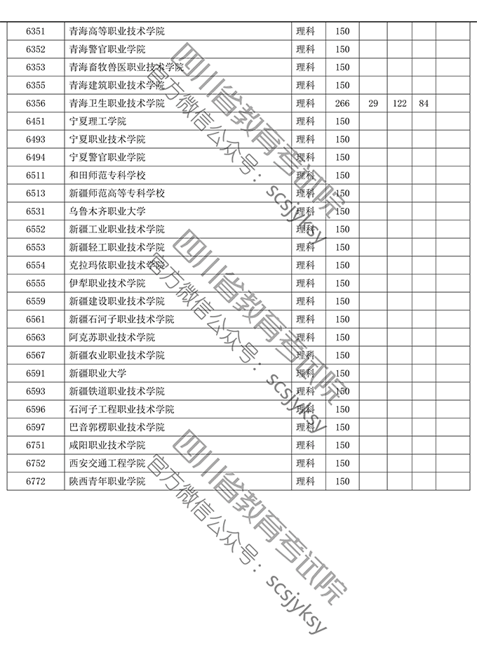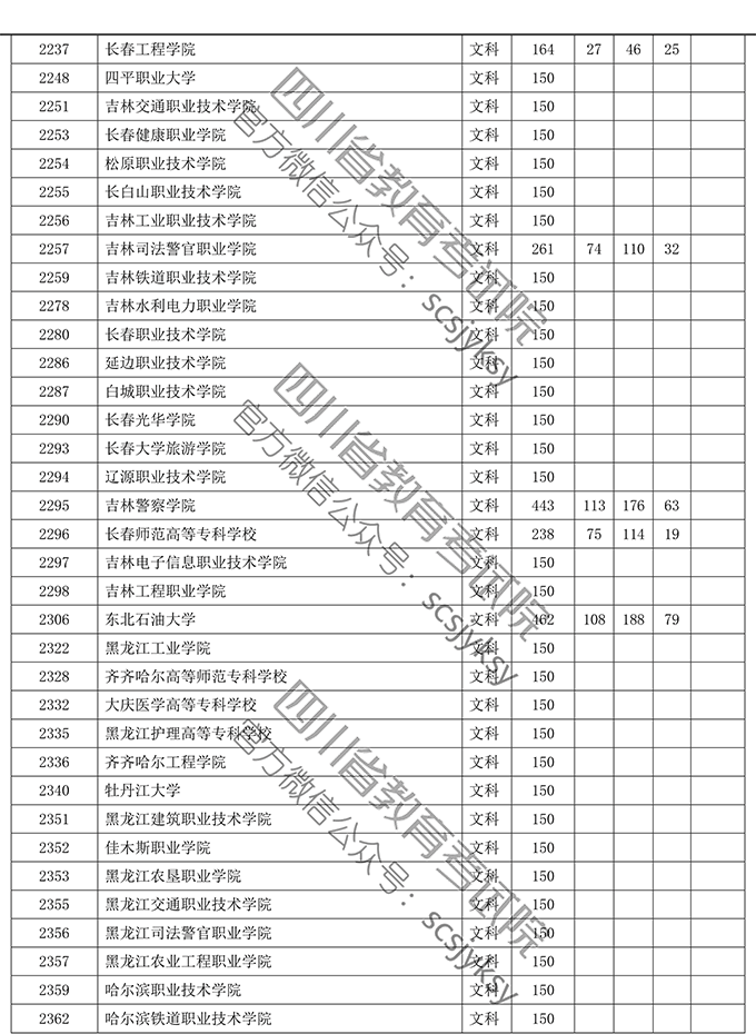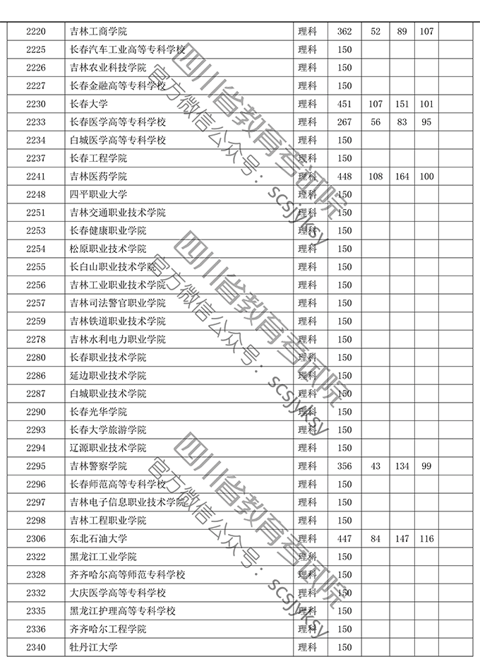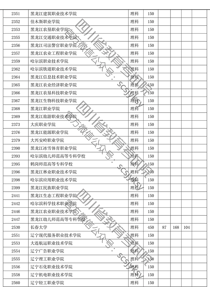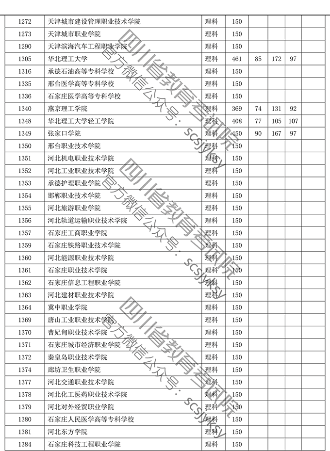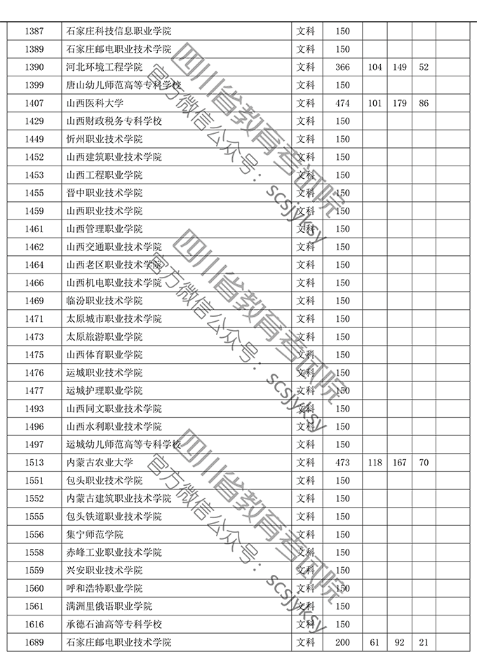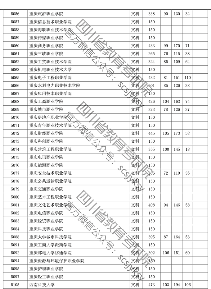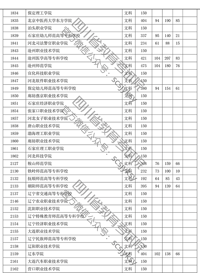 四川省2019年普通高等学校在川招生专科录取院校调档线