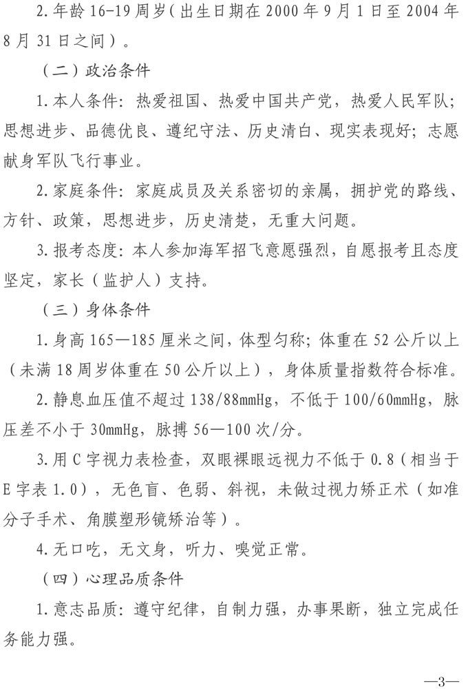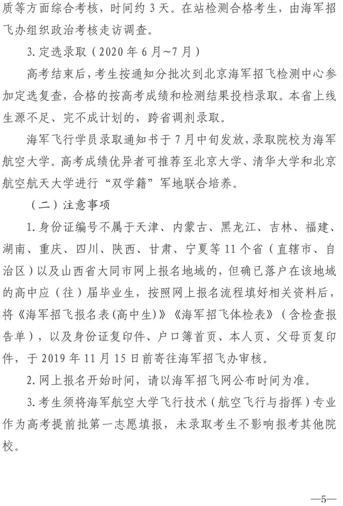 2020年海军招收飞行学员简章