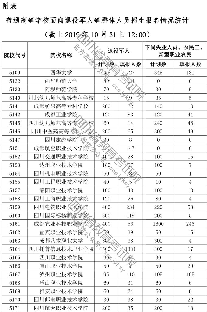 附件:普通高等学校面向退役军人等群体人员招生报名情况统计(截止2019年10月31日12:00)