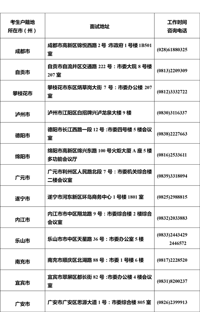 考生于7月27日至28日参加户籍所在地市(州)面试小组组织的面试,具体时间以通知为准(通过短信或者电话方式告知)。各市(州)面试地点和咨询电话详见附件。