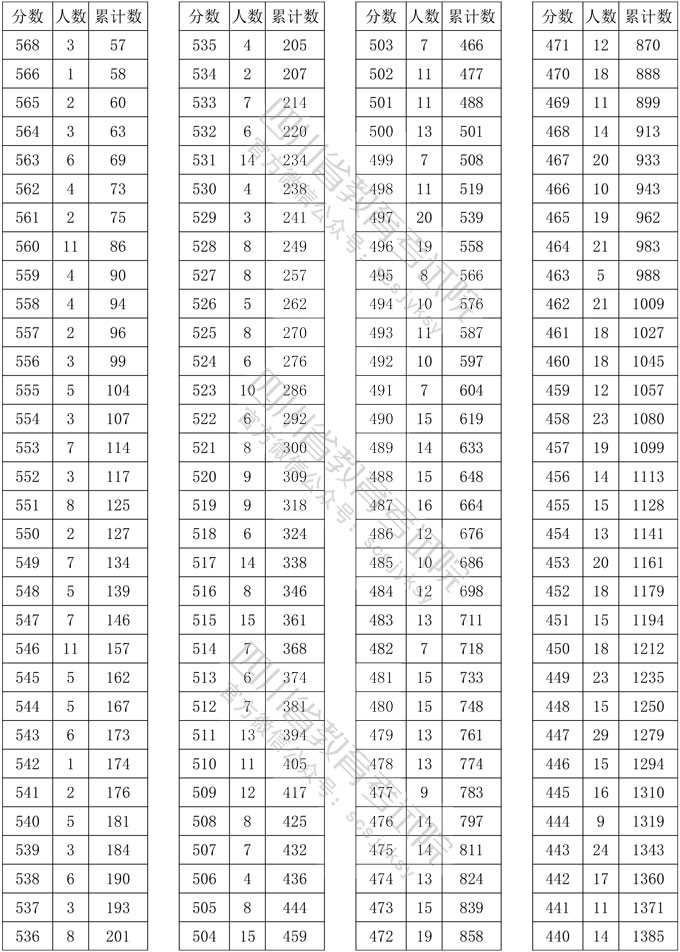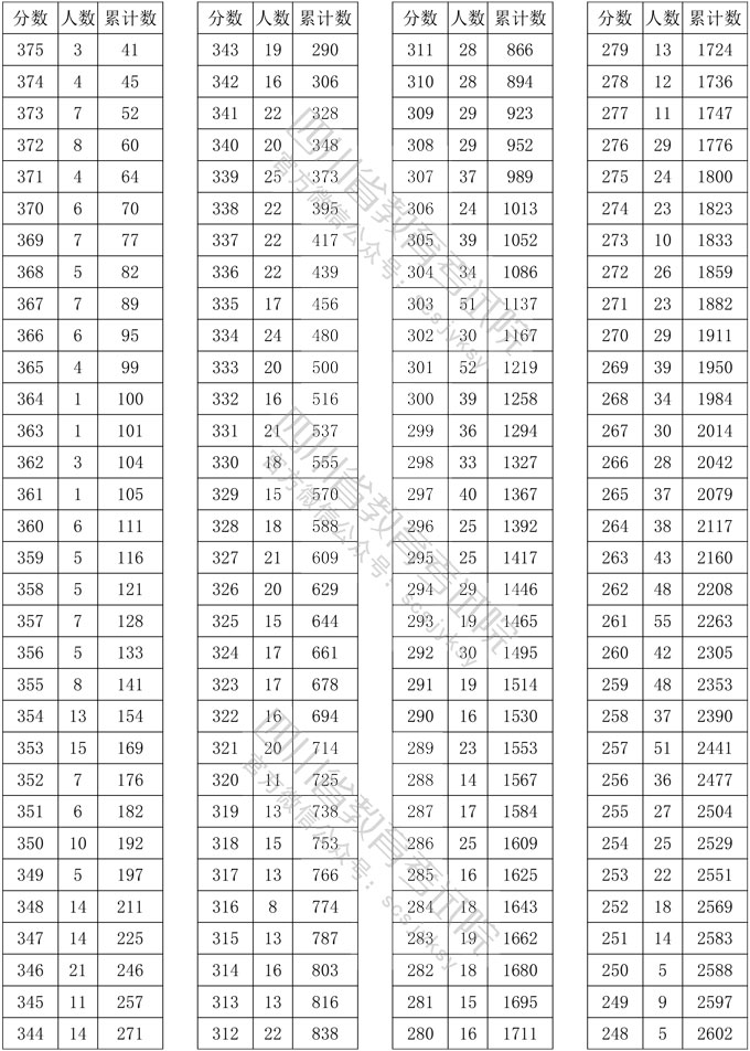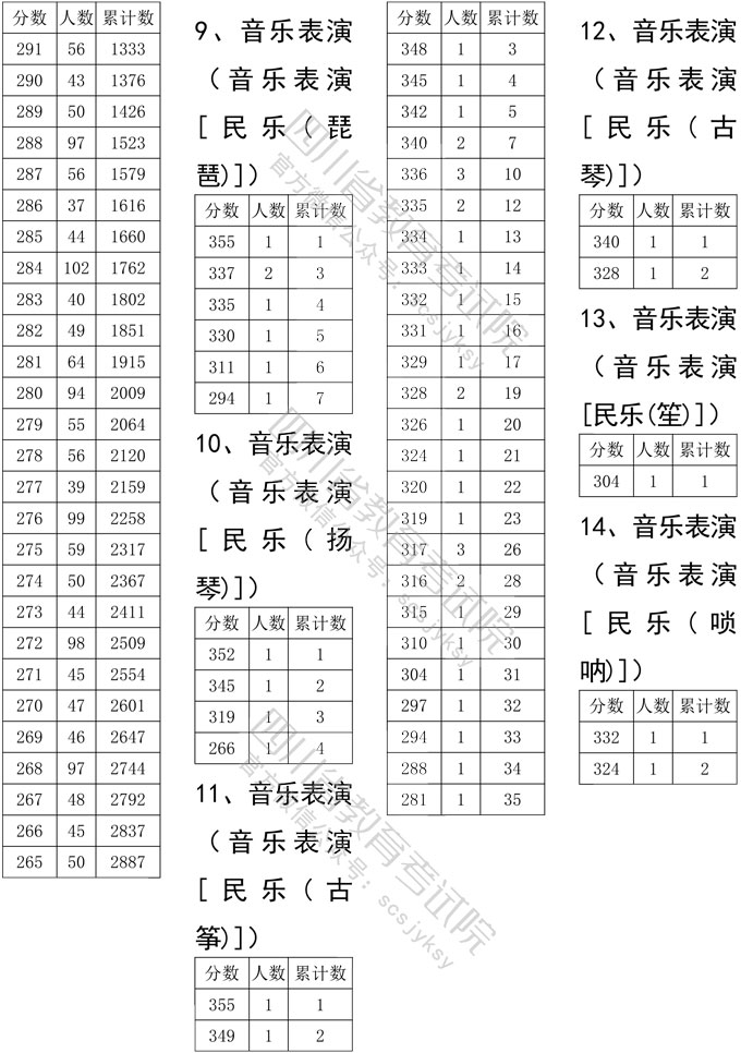 四川省2020年普通高校艺术体育类专业招生各类本科双上线考生人数一分段统计表