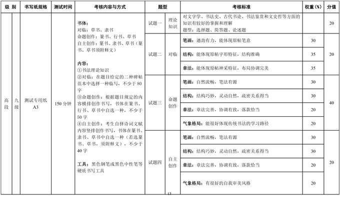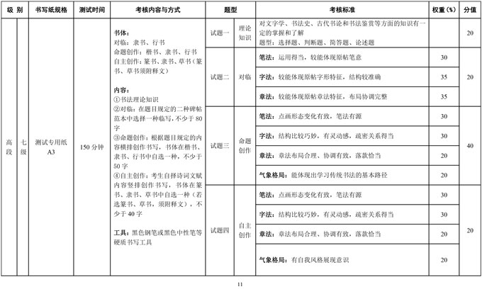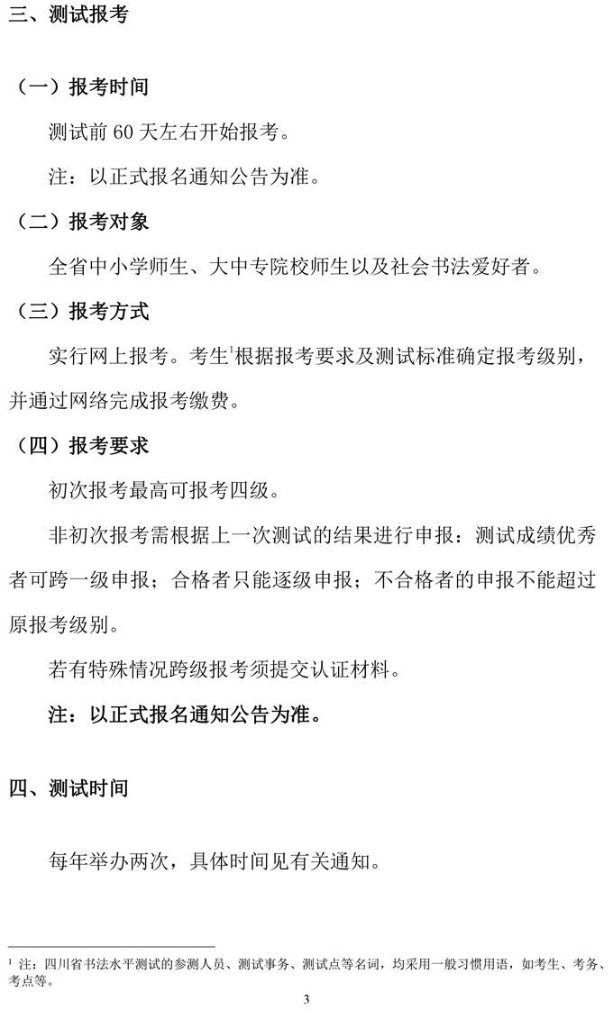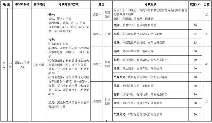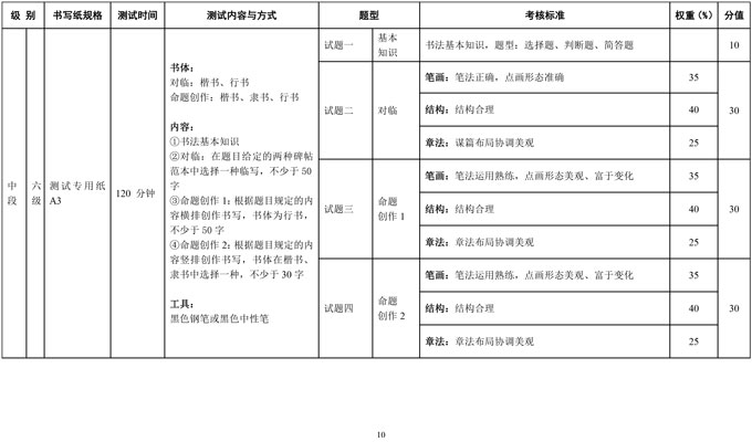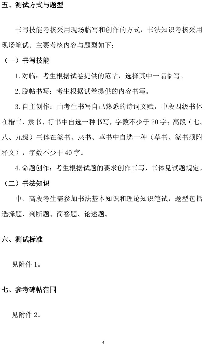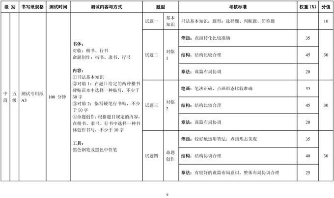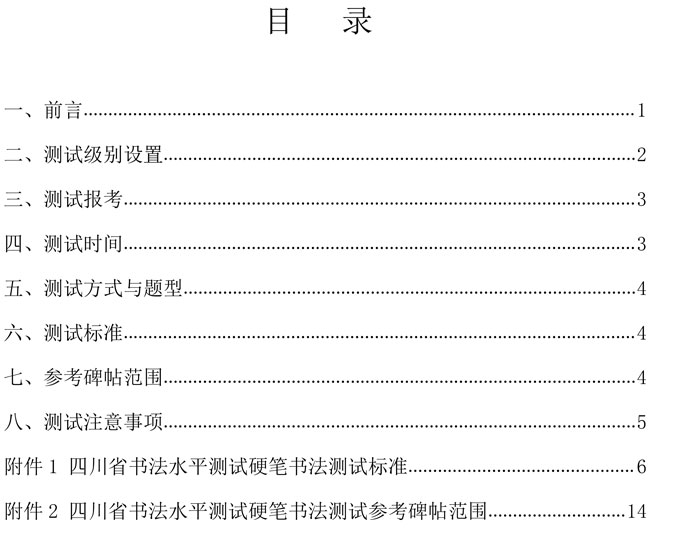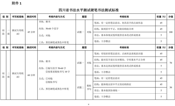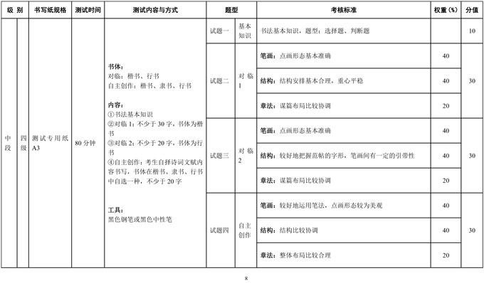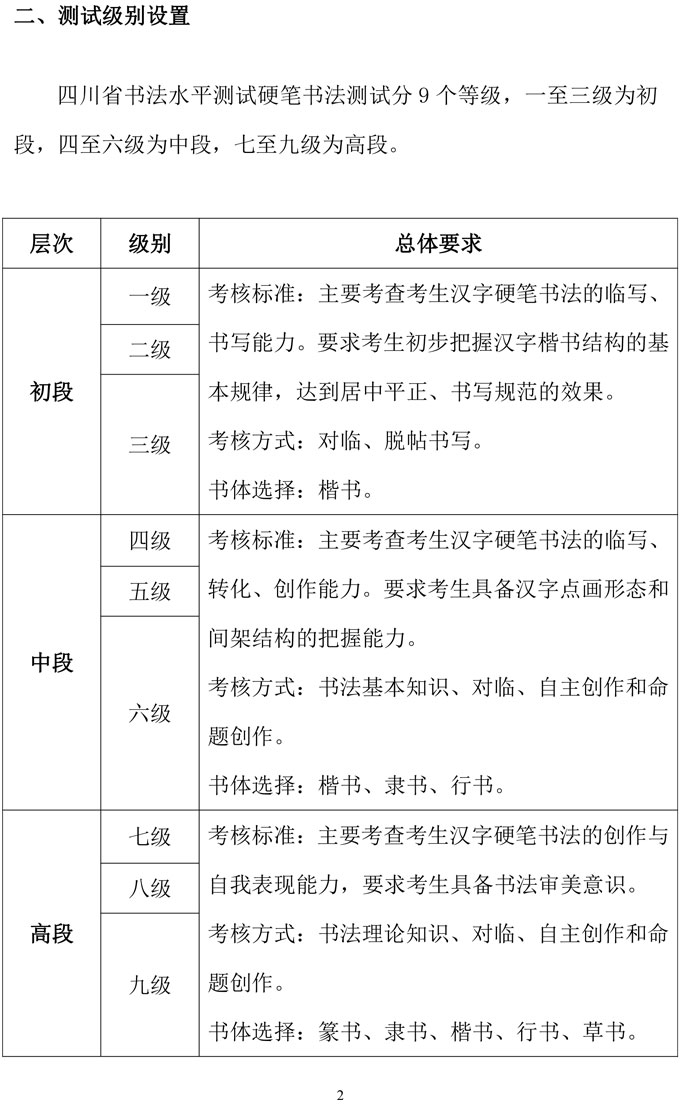 四川省书法水平测试硬笔书法测试大纲 (2020年版)