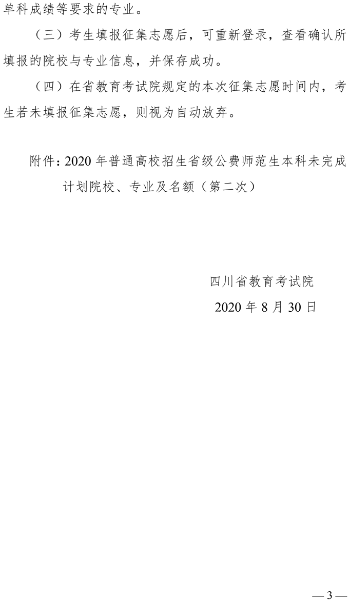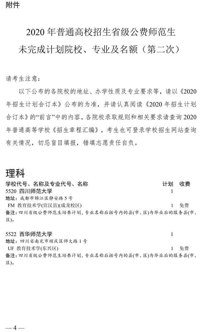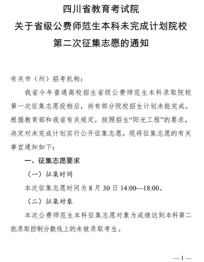 关于省级公费师范生本科未完成计划院校第二次征集志愿的通知