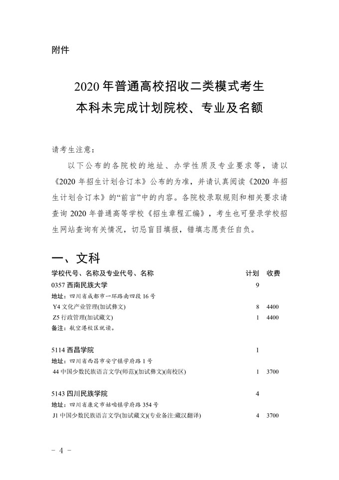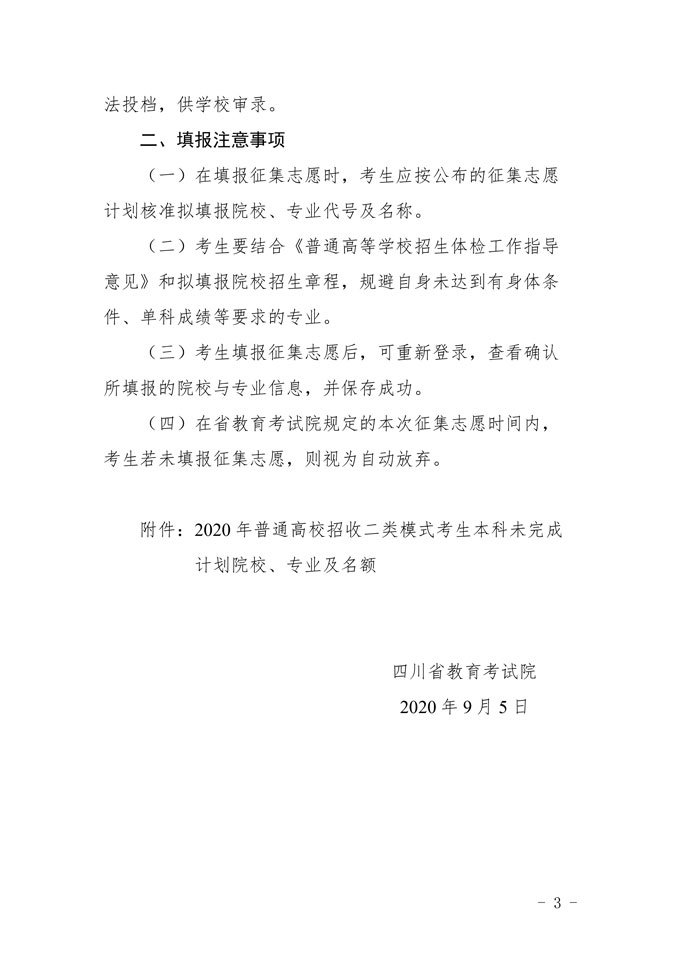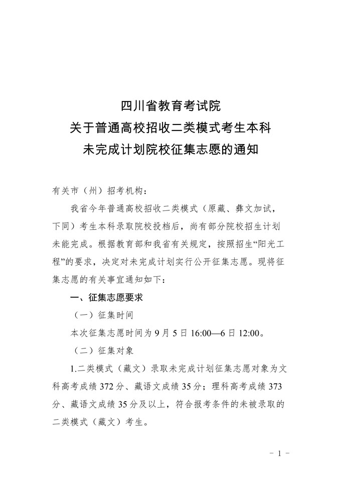 关于普通高校招收二类模式考生本科未完成计划院校征集志愿的通知