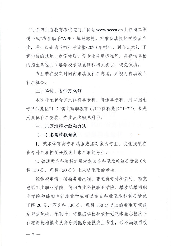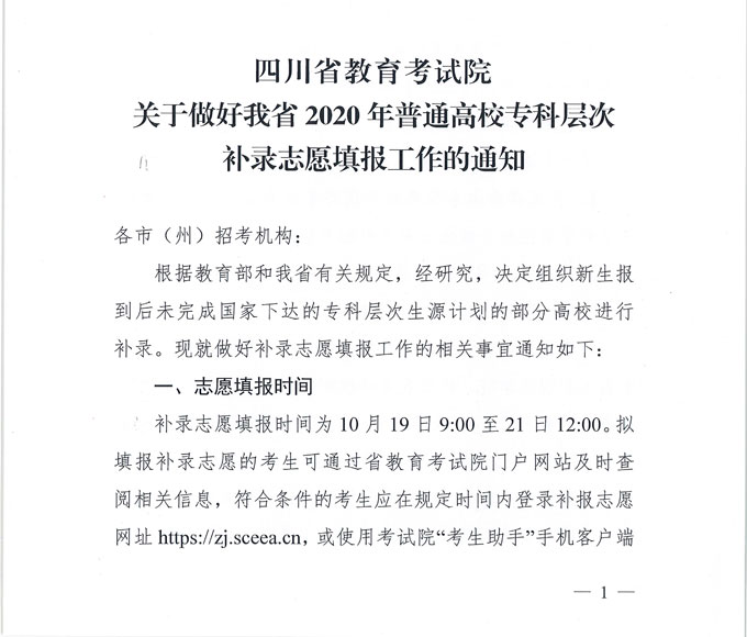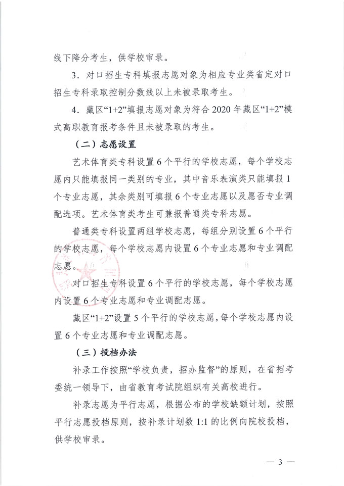 关于做好我省2020年普通高校专科层次补录志愿填报工作的通知