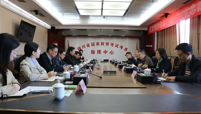 上午的座谈会上,双方分管负责同志介绍了四川、江苏两地教育考试院工作的总体情况,与会人员重点围绕考试业务信息化建设及维护、命题基地制度建设和运营管理等内容深入沟通研讨。