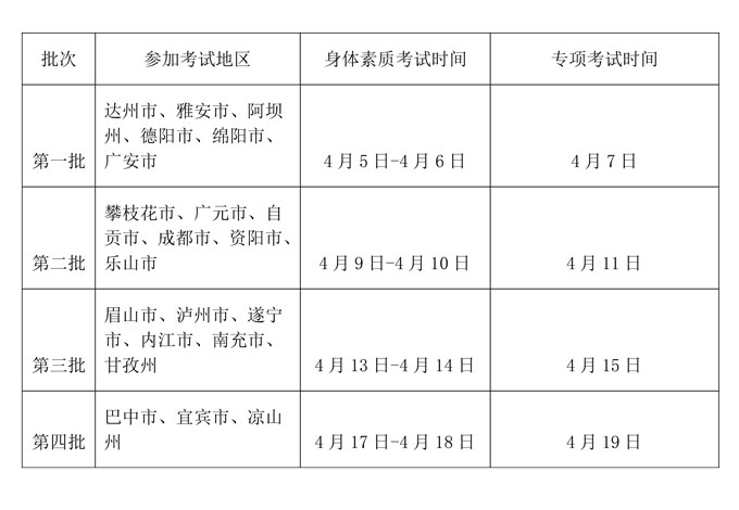 四川省2021年普通高校招生体育类专业统考考试时间安排公告