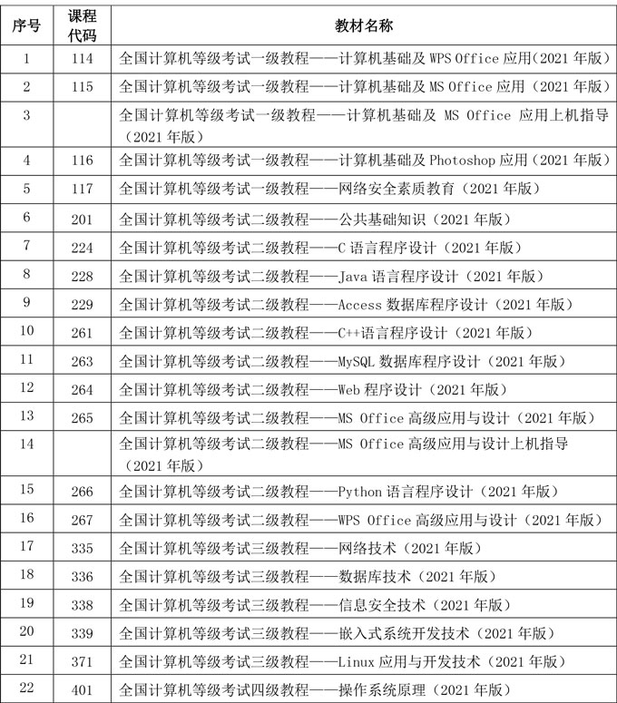 八、NCRE科目设置证书体系、大纲目录、教程目录