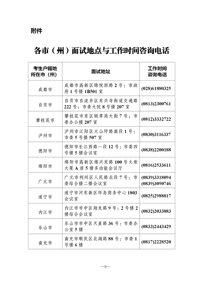 考生于6月27日至28日参加户籍所在地市(州)面试小组组织的面试,具体时间以通知为准(通过短信或者电话方式告知)。各市(州)面试地点和咨询电话详见附件。