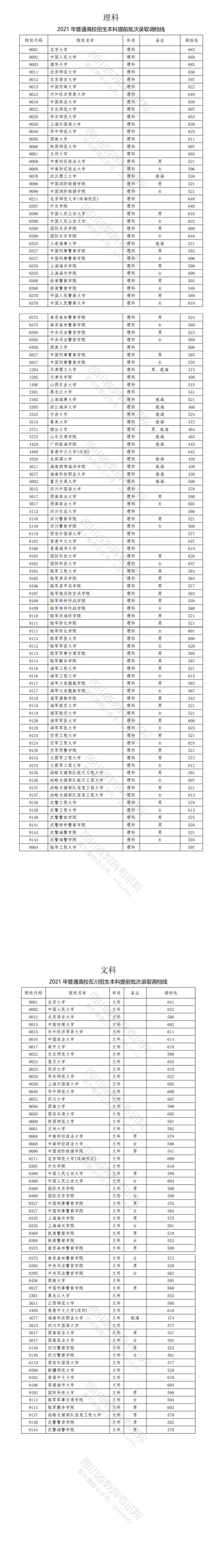 重磅!2021年在川招生普通高校本科提前批次录取调档线公布