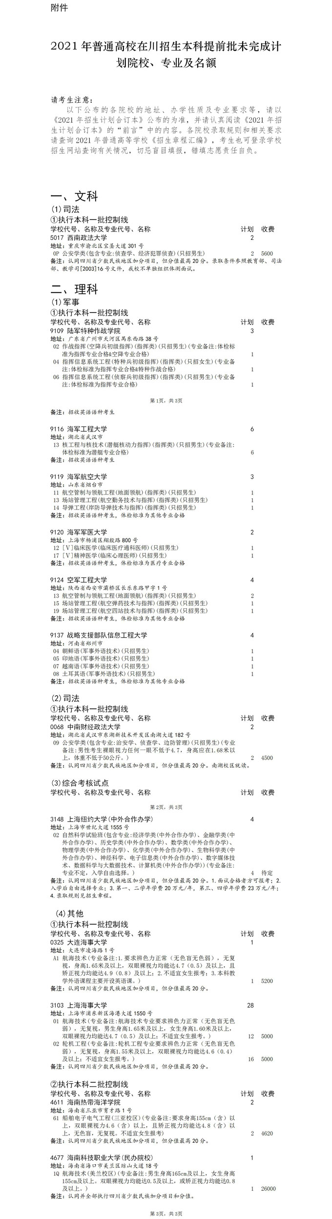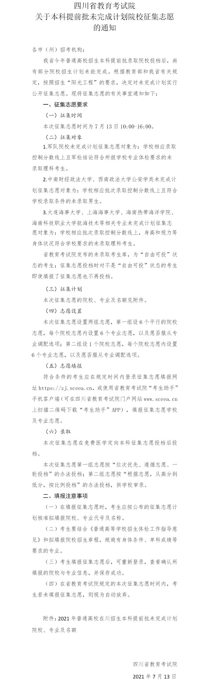 关于本科提前批未完成计划院校征集志愿的通知