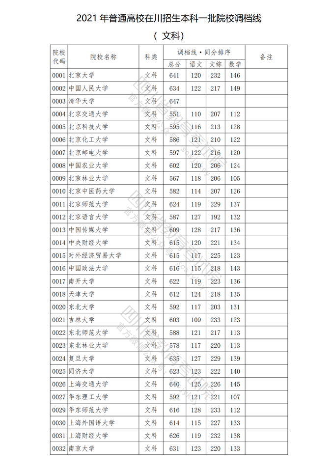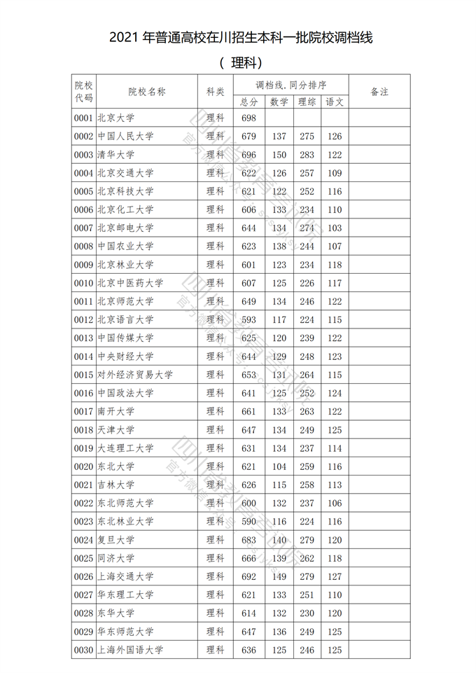 我省2021年普通高校招生本科一批已于昨日投档。为方便广大考生和家长及时了解录取信息,省教育考试院按文、理科发布了今年普通高校在川招生本科一批院校调档线。