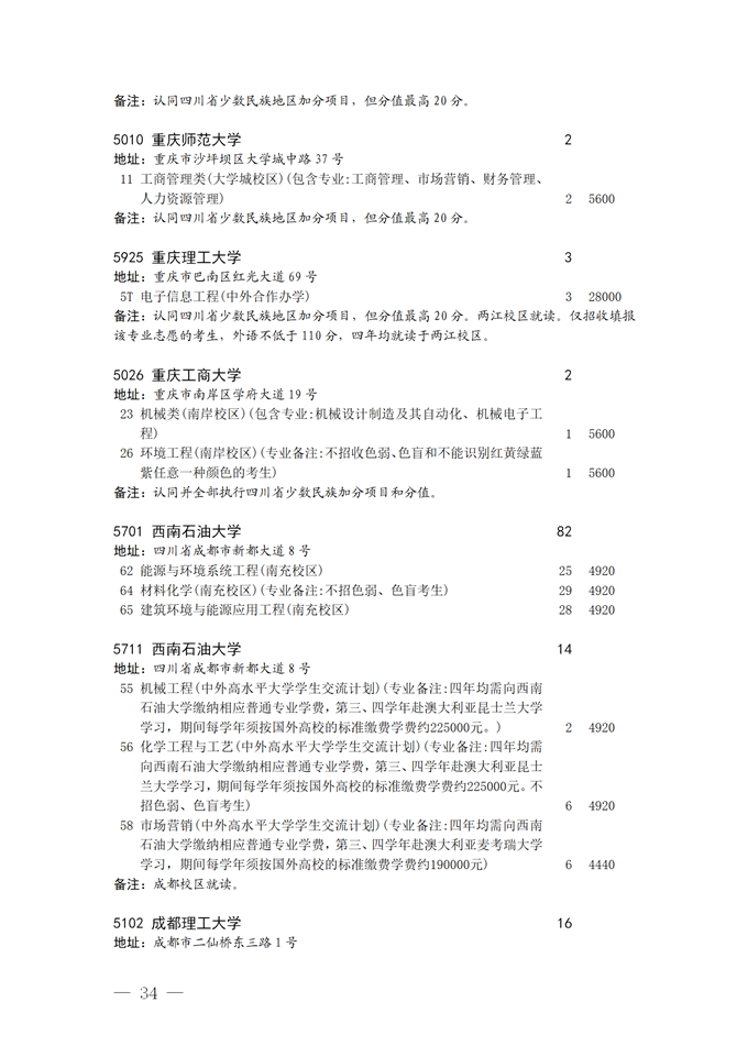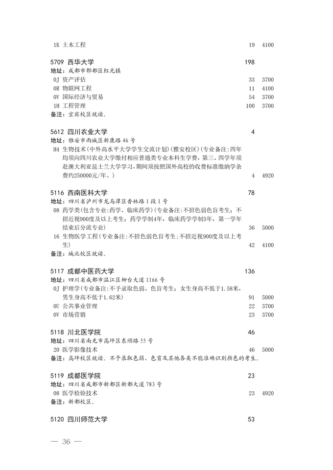 四川省2025年普通高校专升本招生专业及计划