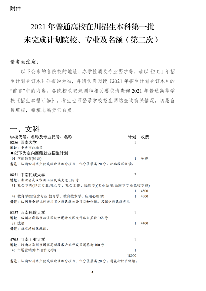 关于本科第一批未完成计划院校第二次征集志愿的通知