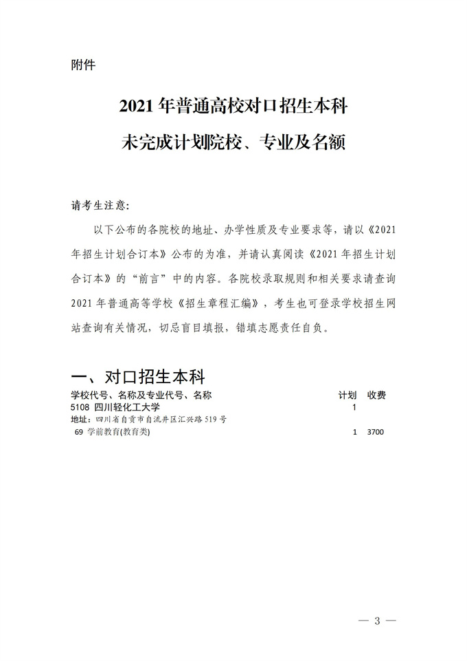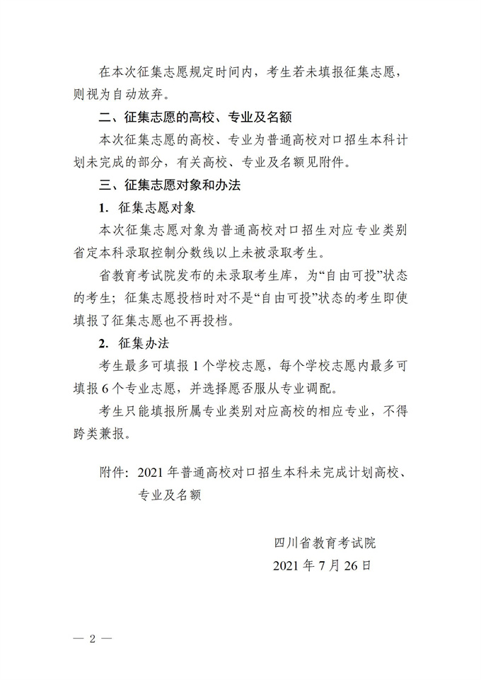 关于普通高校对口招生本科录取未完成计划高校征集志愿的通知