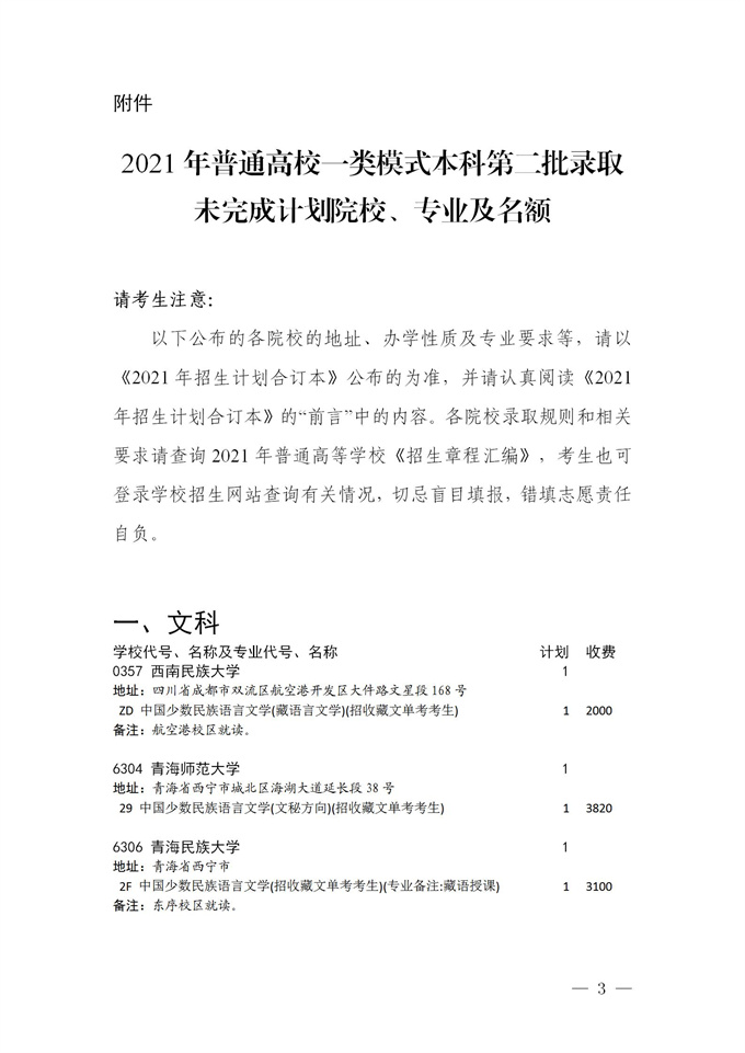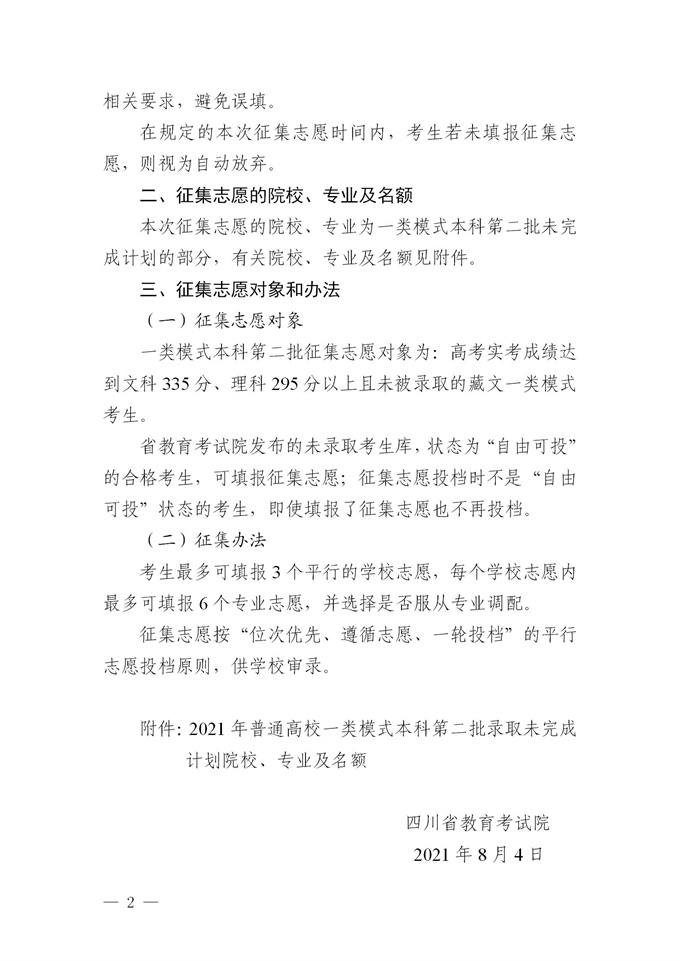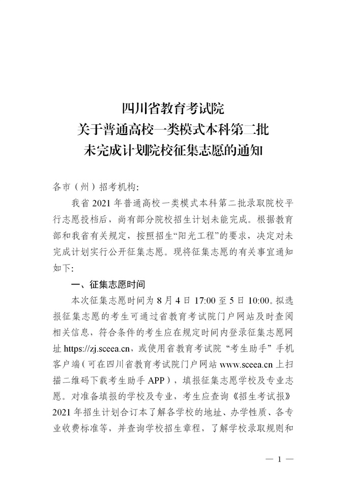 关于普通高校一类模式本科第二批未完成计划院校征集志愿的通知