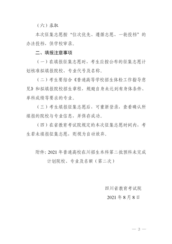 关于本科第二批预科未完成计划院校第二次征集志愿的通知