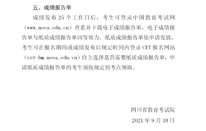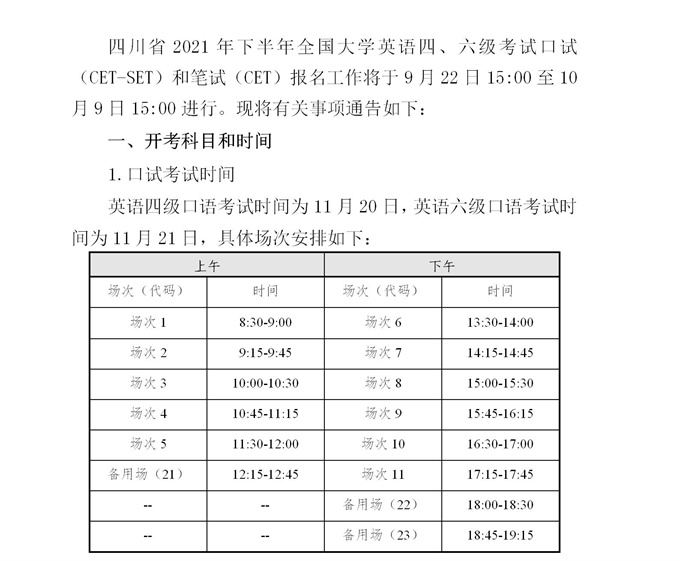 四川省2021年下半年全国大学英语四、六级考试报名通告
