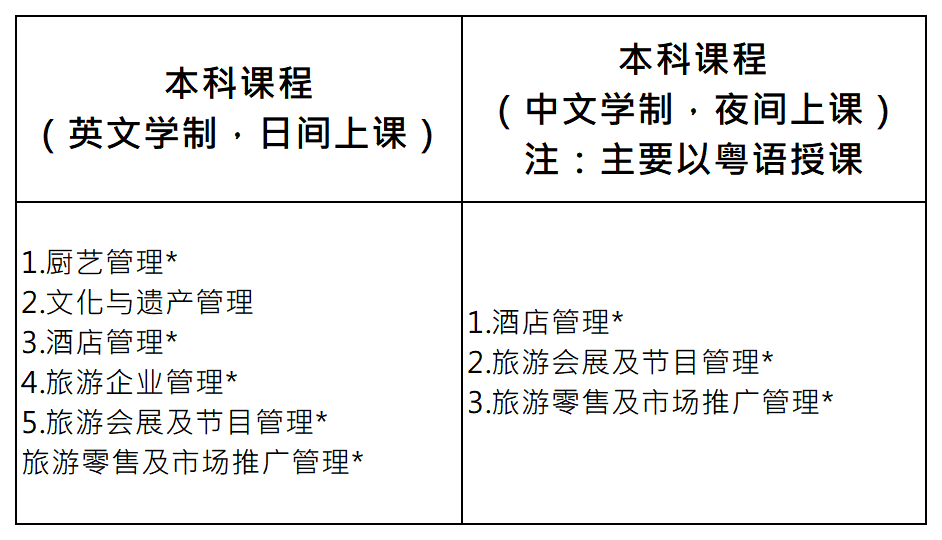 国际旅游与酒店管理学士:酒店管理、休闲和水疗管理、餐饮管理、会展管理、博彩和俱乐部管理、智慧旅游管理