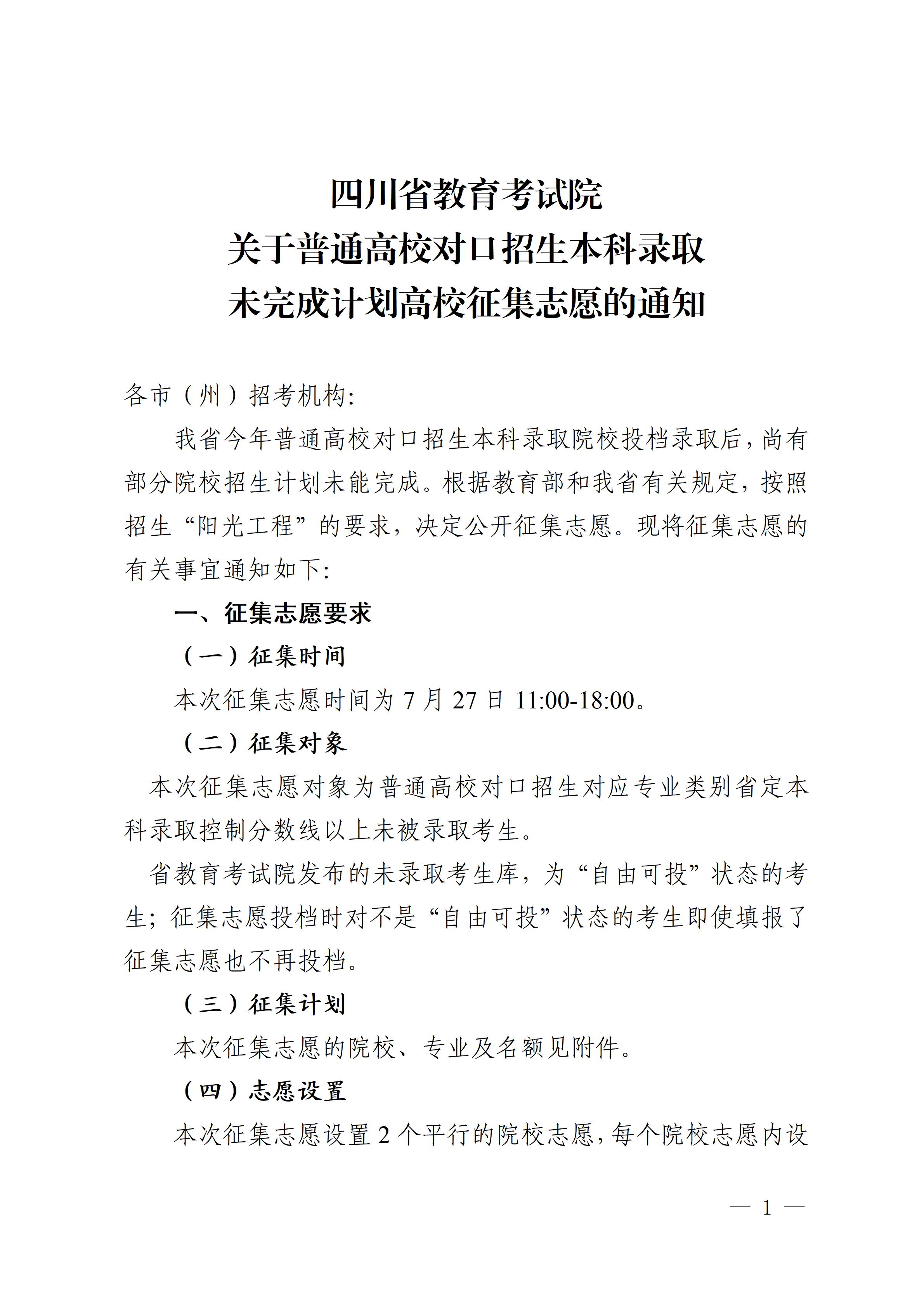 关于普通高校对口招生本科录取未完成计划高校征集志愿的通知