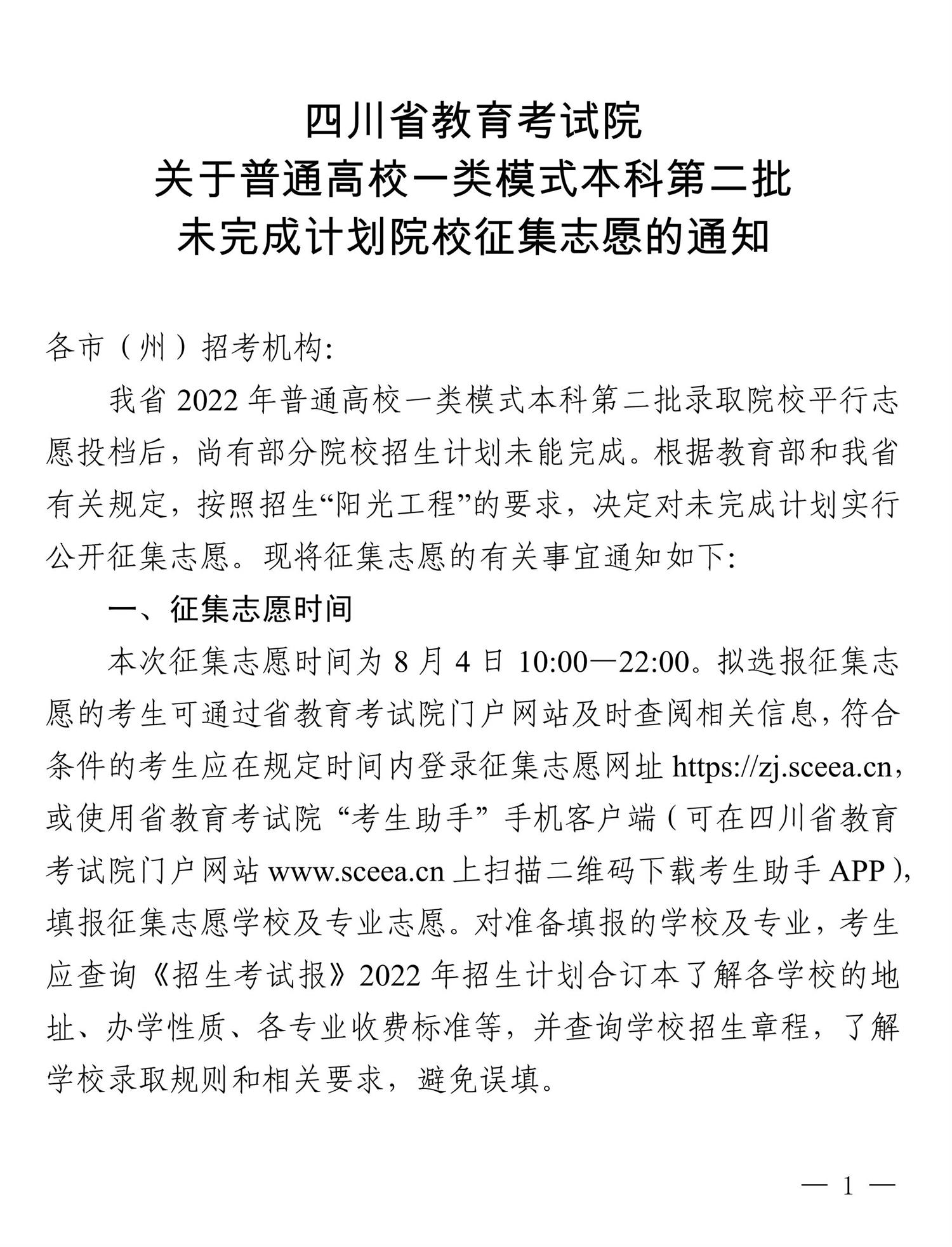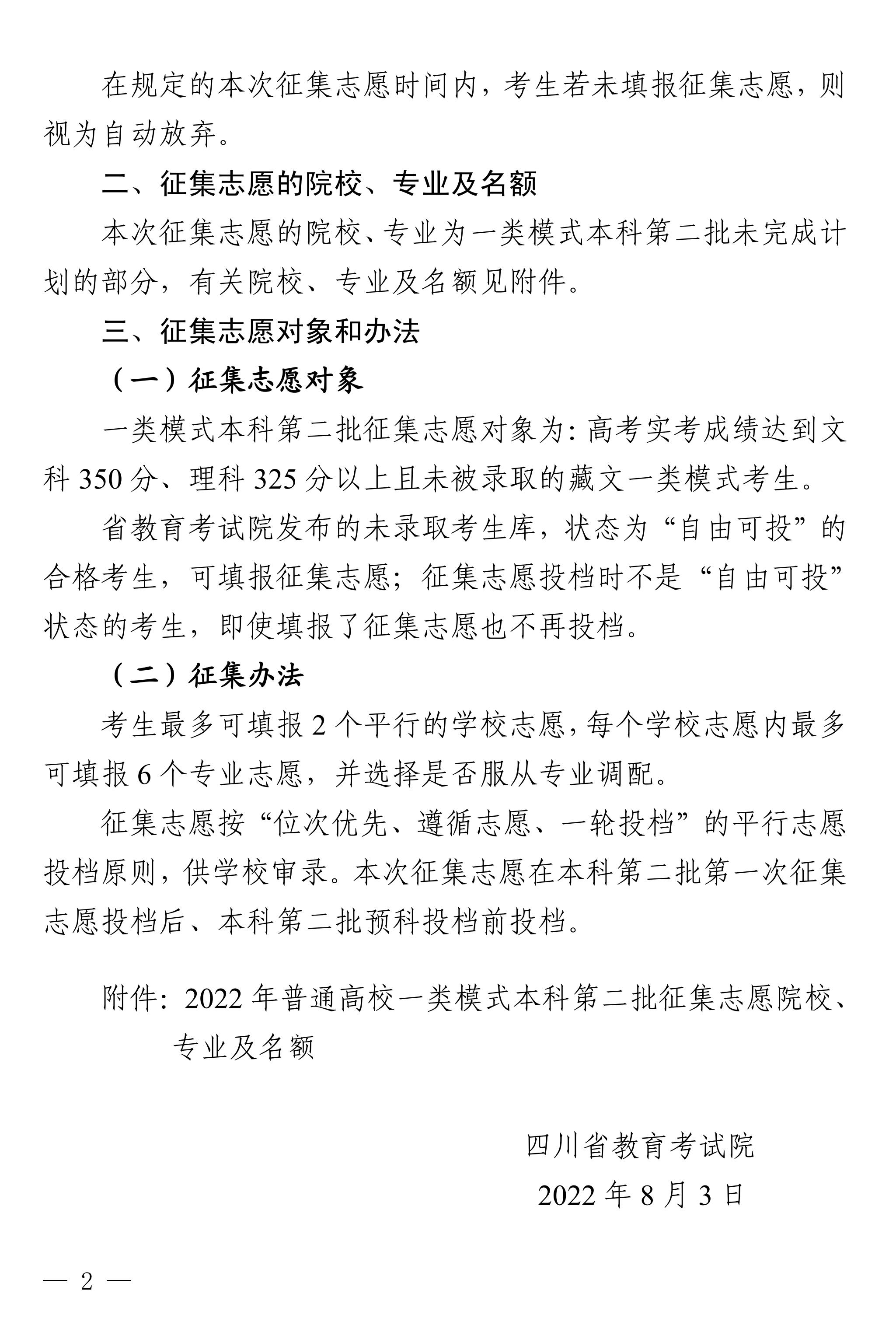 关于普通高校一类模式本科第二批未完成计划院校征集志愿的通知