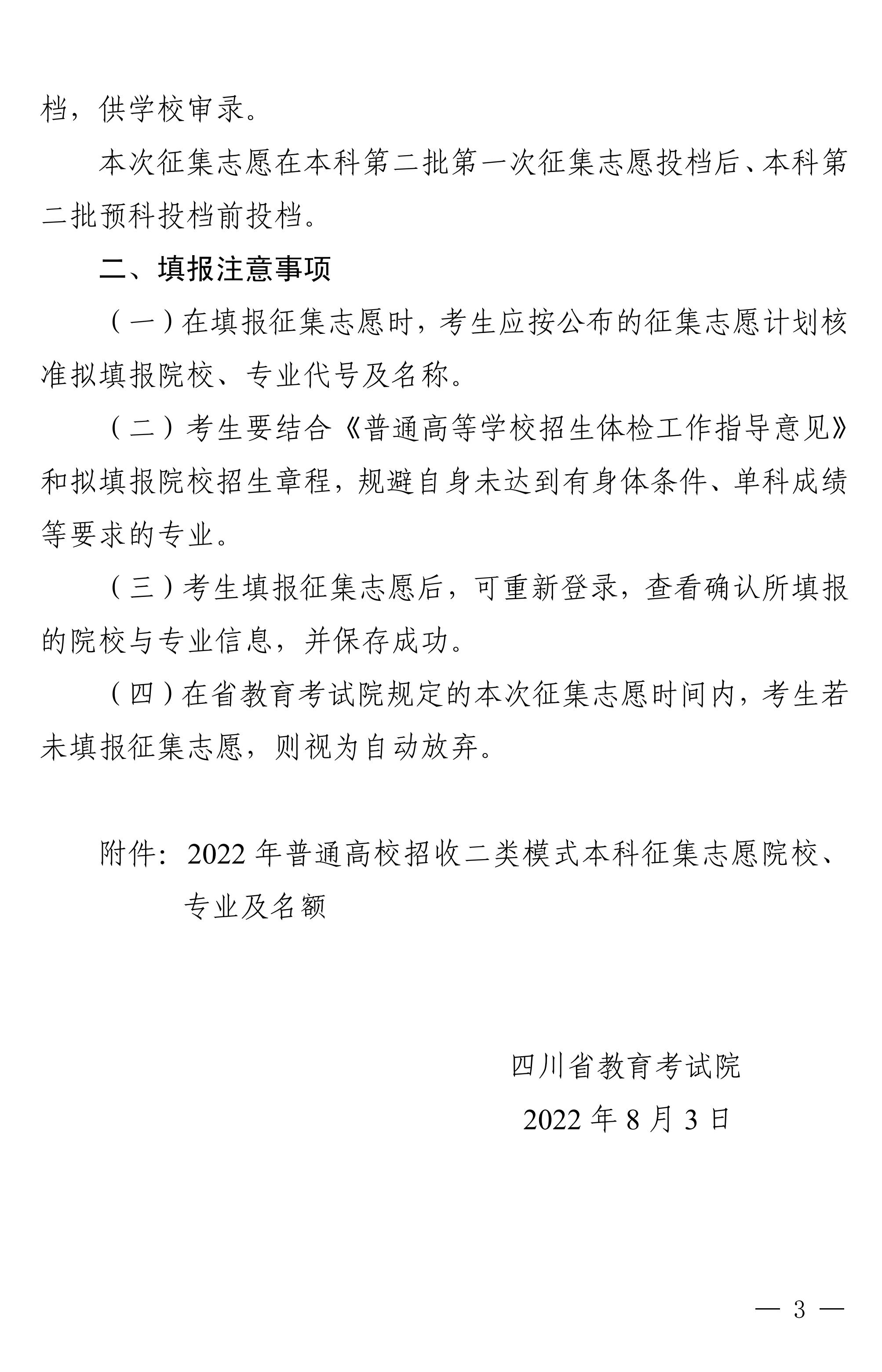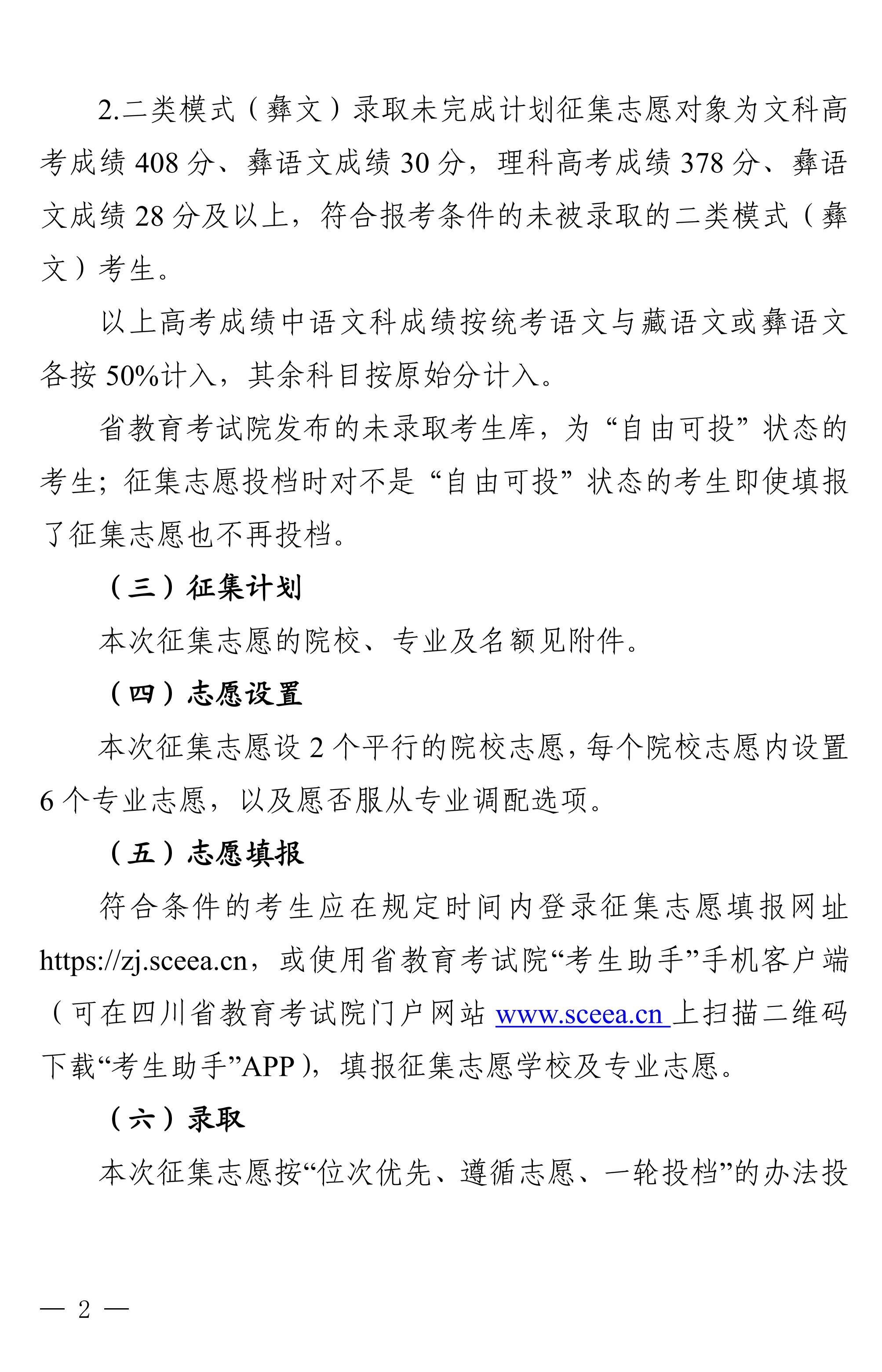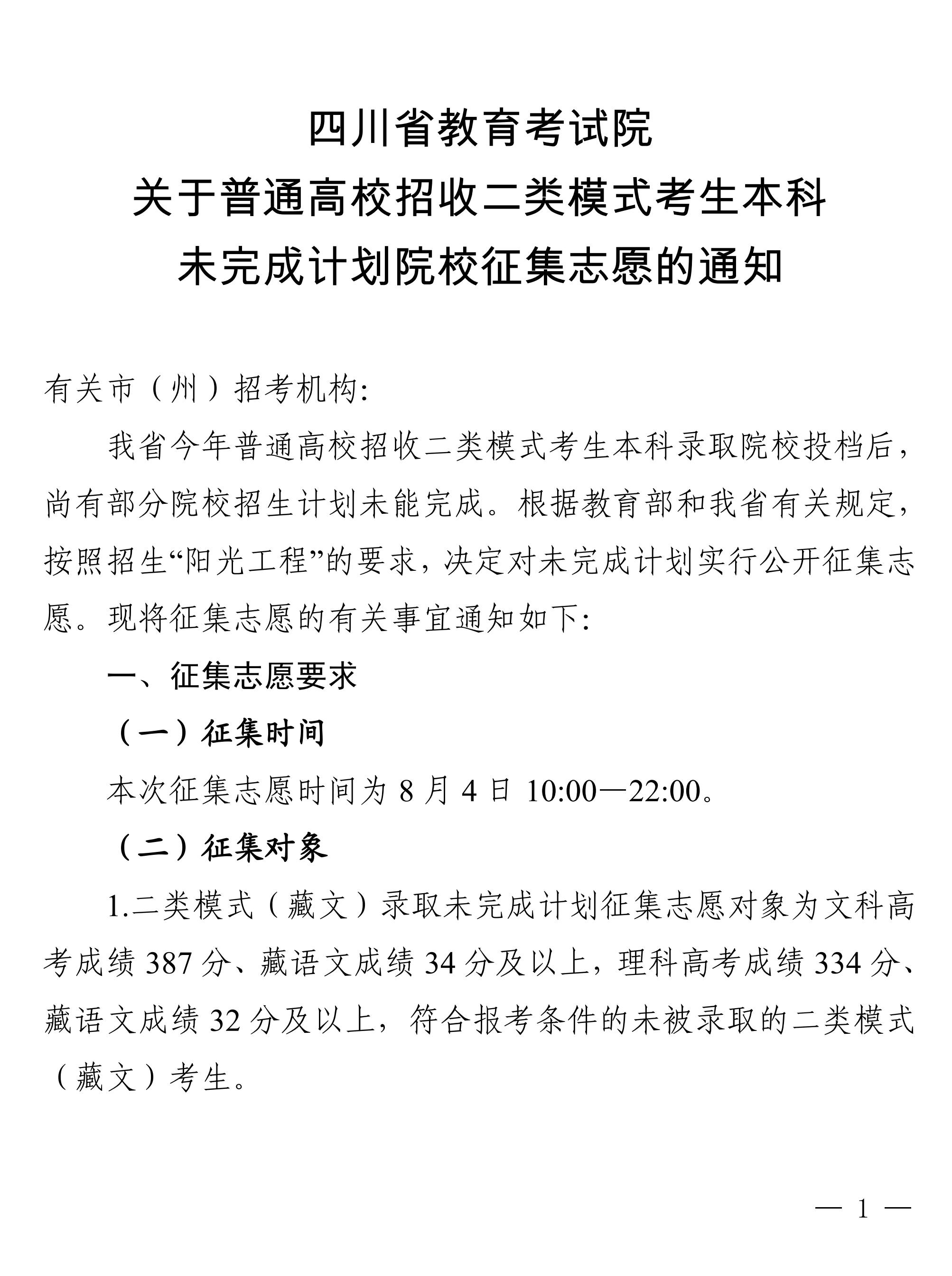 关于普通高校招收二类模式考生本科未完成计划院校征集志愿的通知