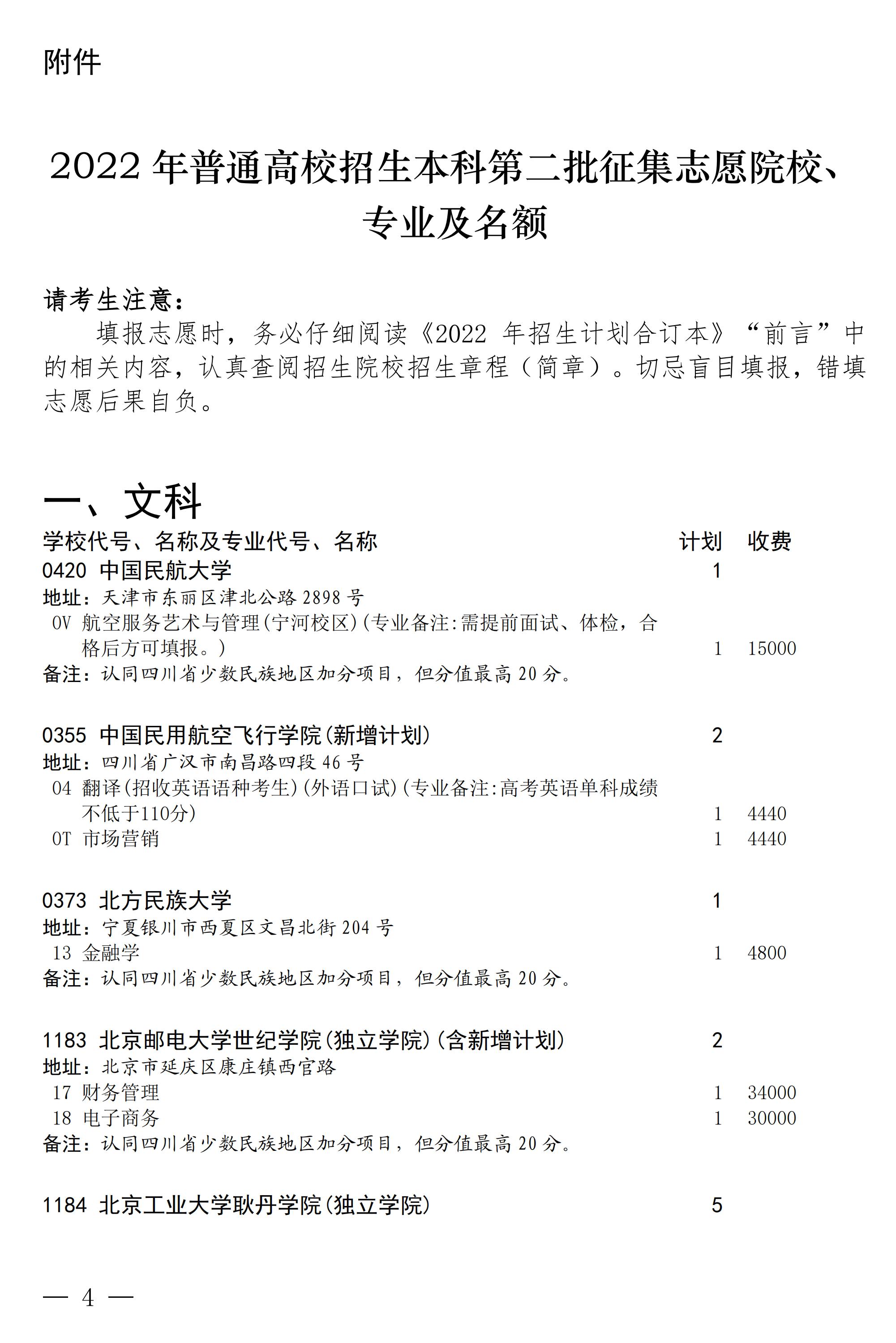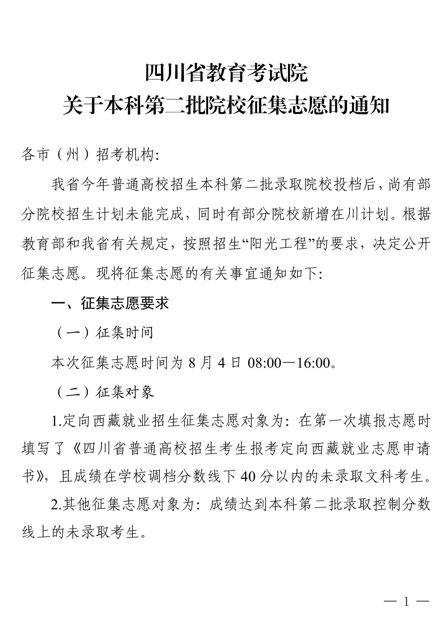 关于本科第二批院校征集志愿的通知